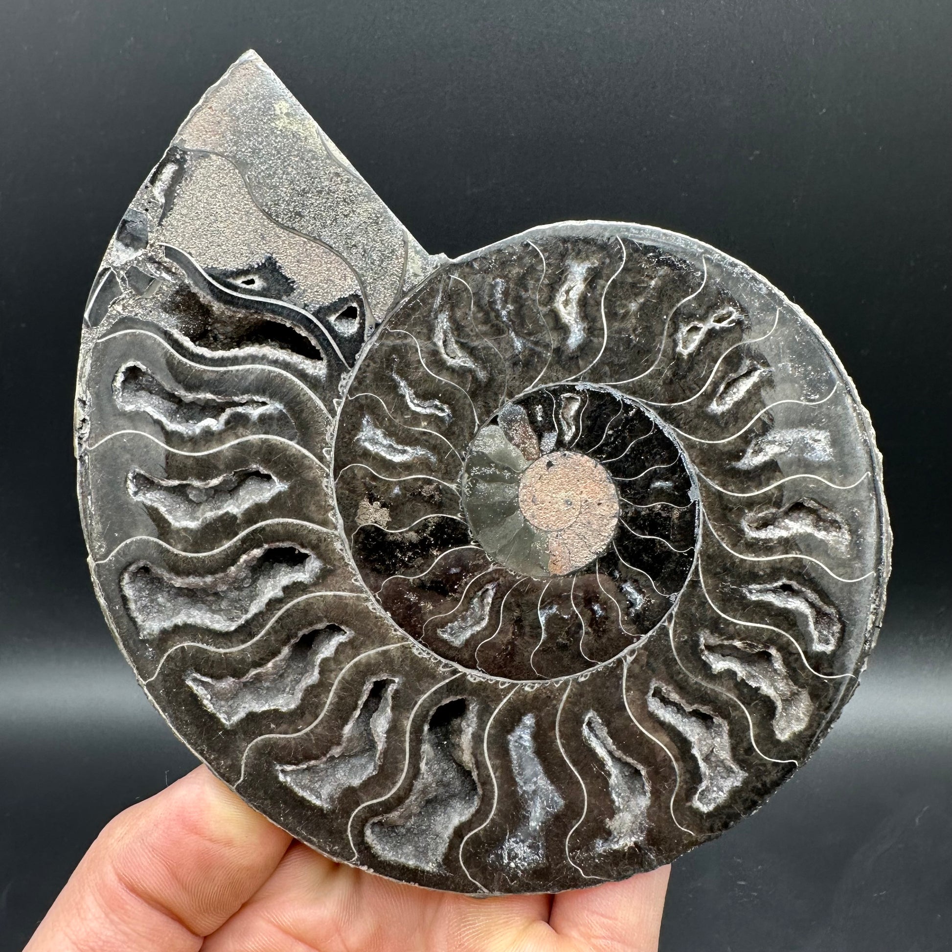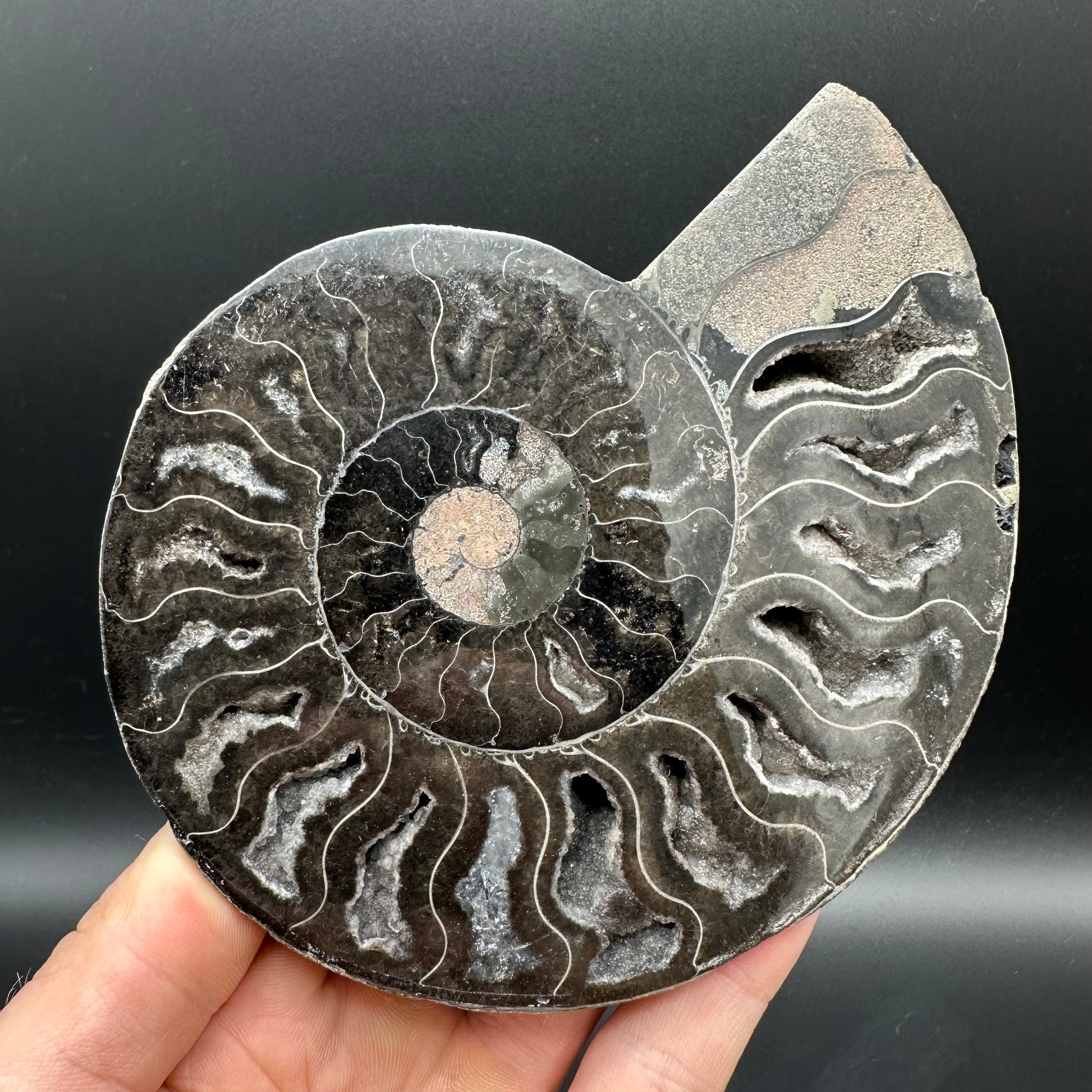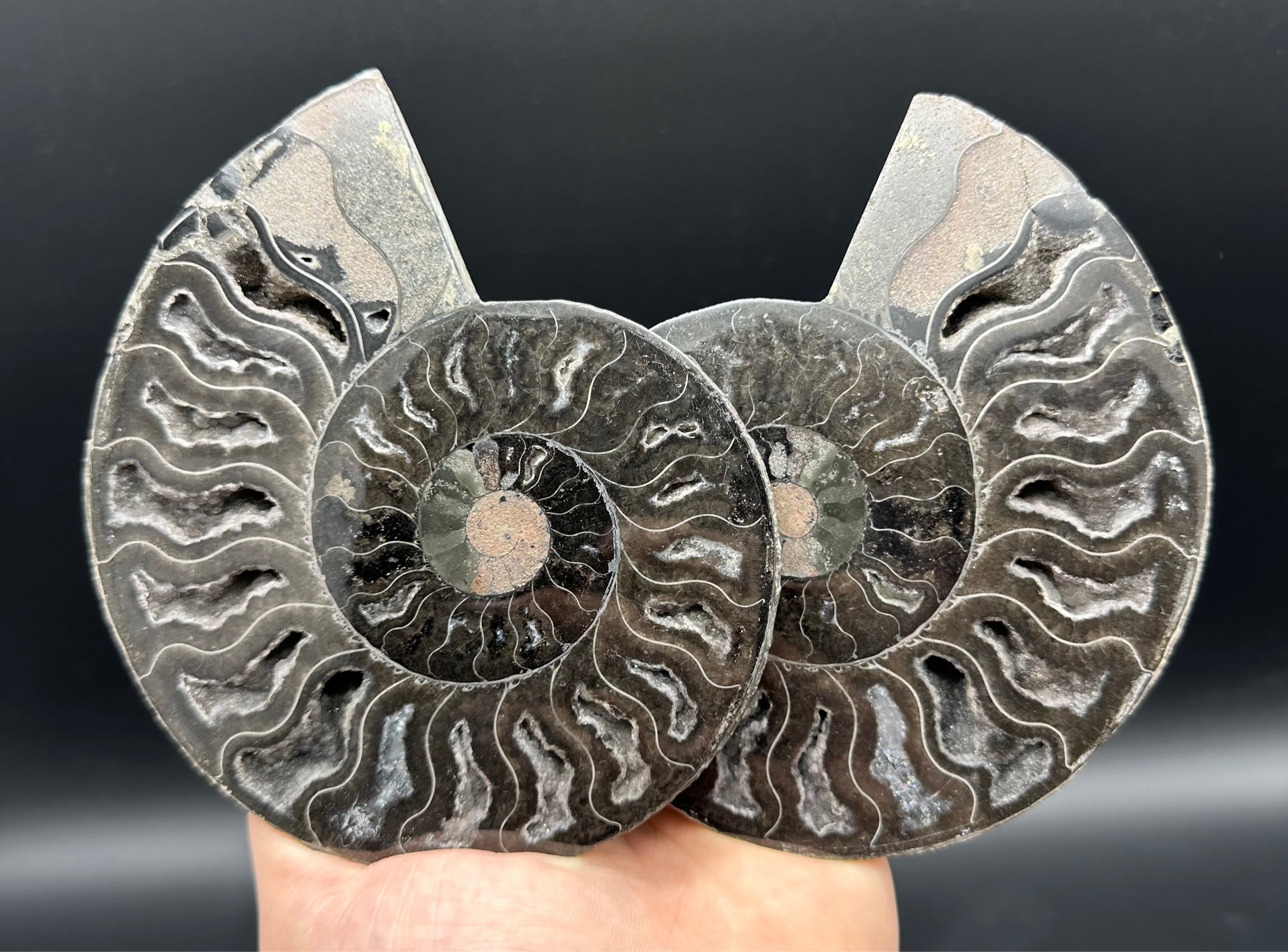 Cleoniceras Ammonite Cut And Polished Fossil Pair With Stand - Cretaceous Ammonite Madagascar