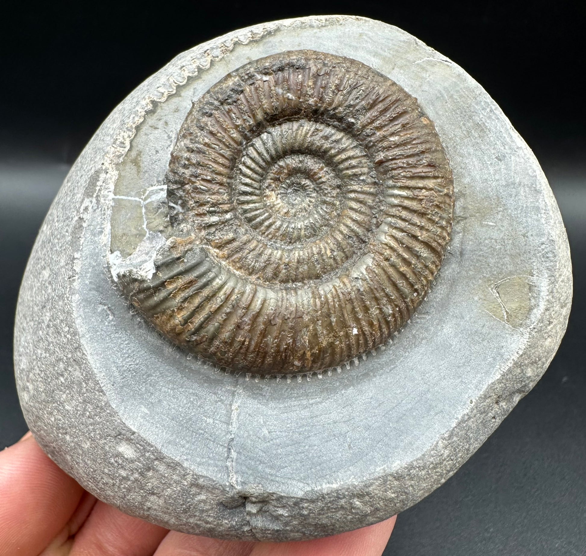 Ammonite fossil found near Whitby, North Yorkshire on the Jurassic coast