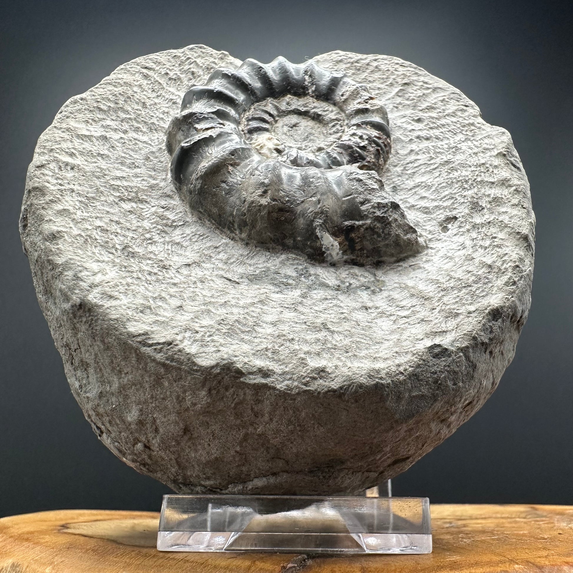 Androgynoceras maculatum ammonite fossil with box and stand - Whitby, North Yorkshire Jurassic Coast Yorkshire Fossils