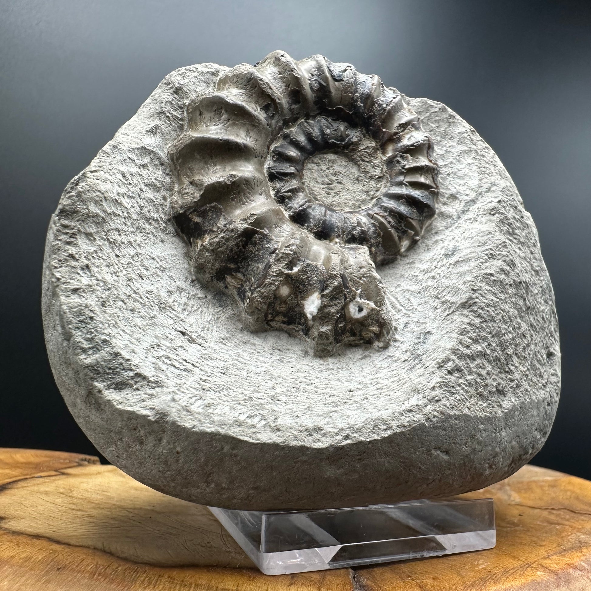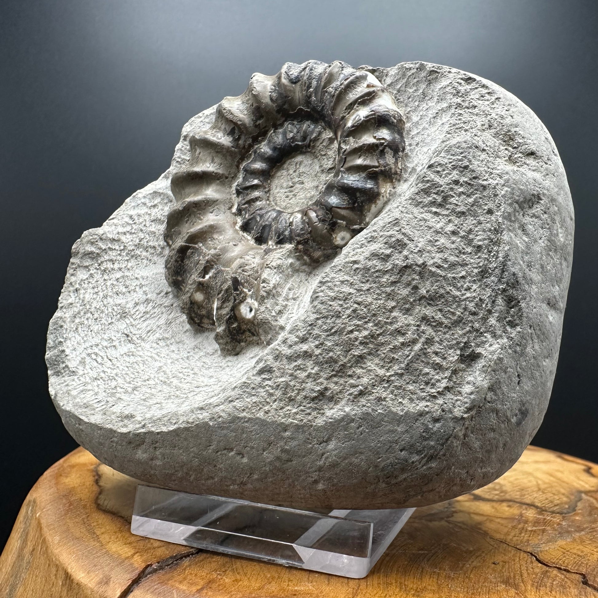Androgynoceras maculatum ammonite fossil with box and stand - Whitby, North Yorkshire Jurassic Coast Yorkshire Fossils
