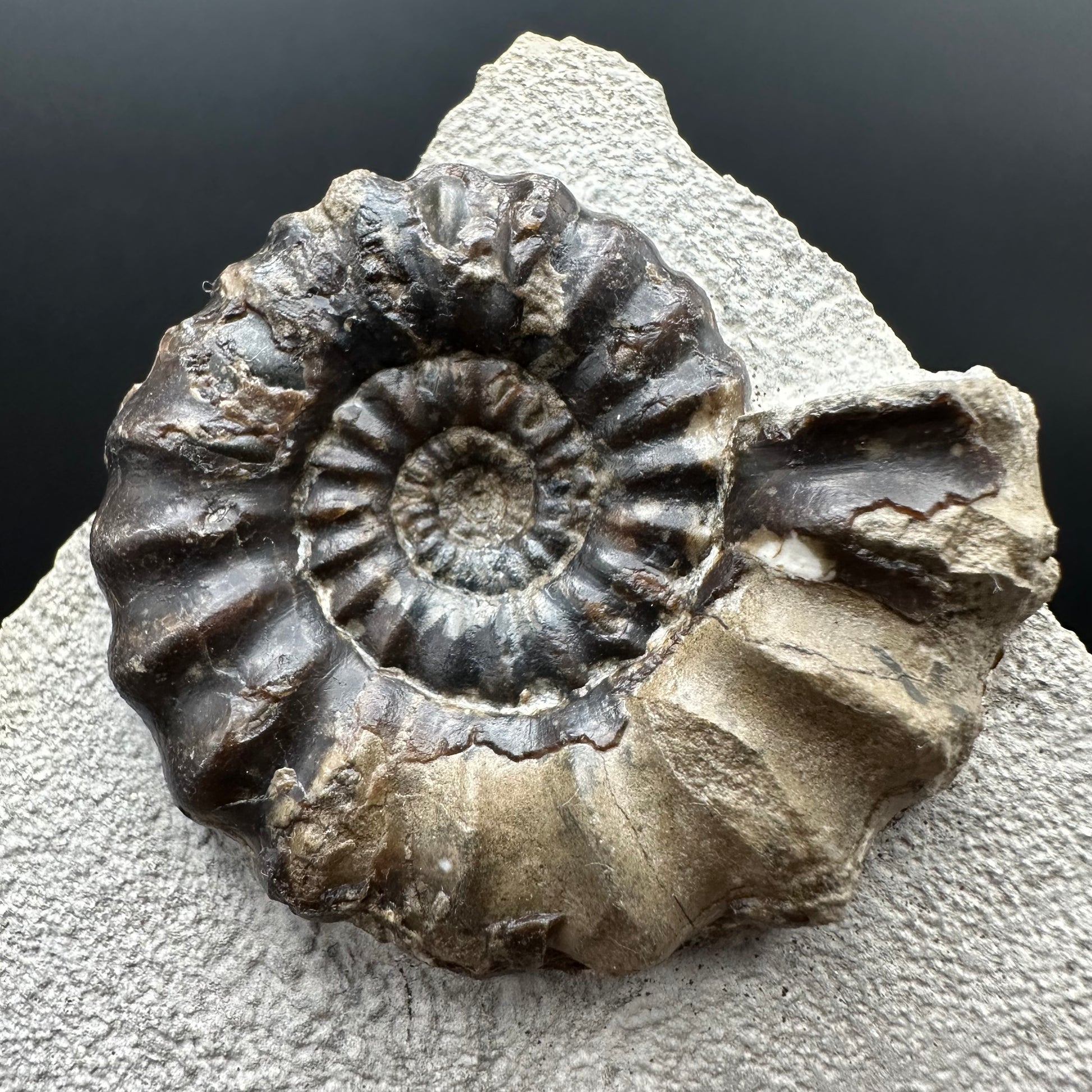 Androgynoceras maculatum ammonite fossil for sale found near Whitby, North Yorkshire on the Jurassic Coast - Gift box & stand included