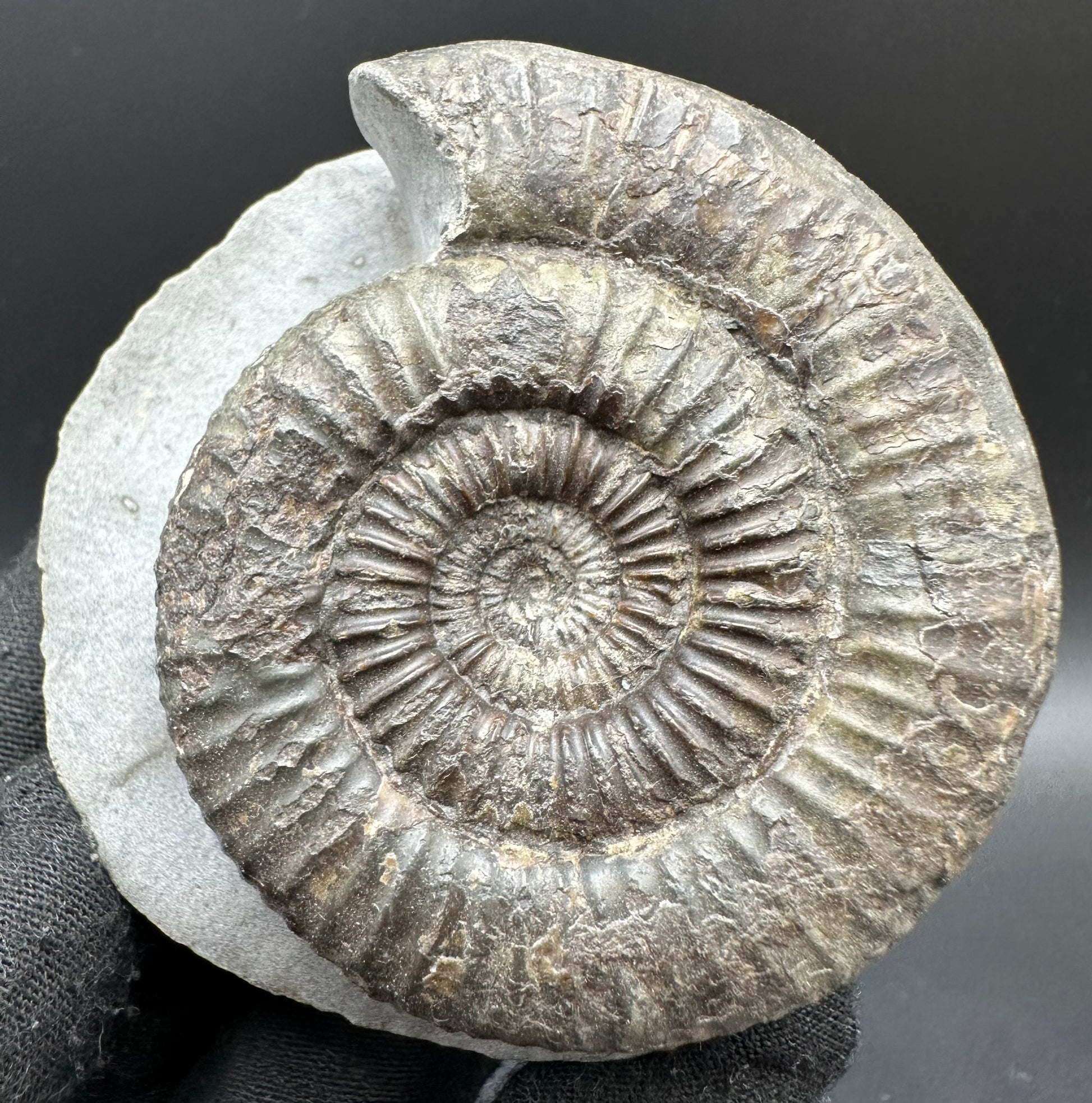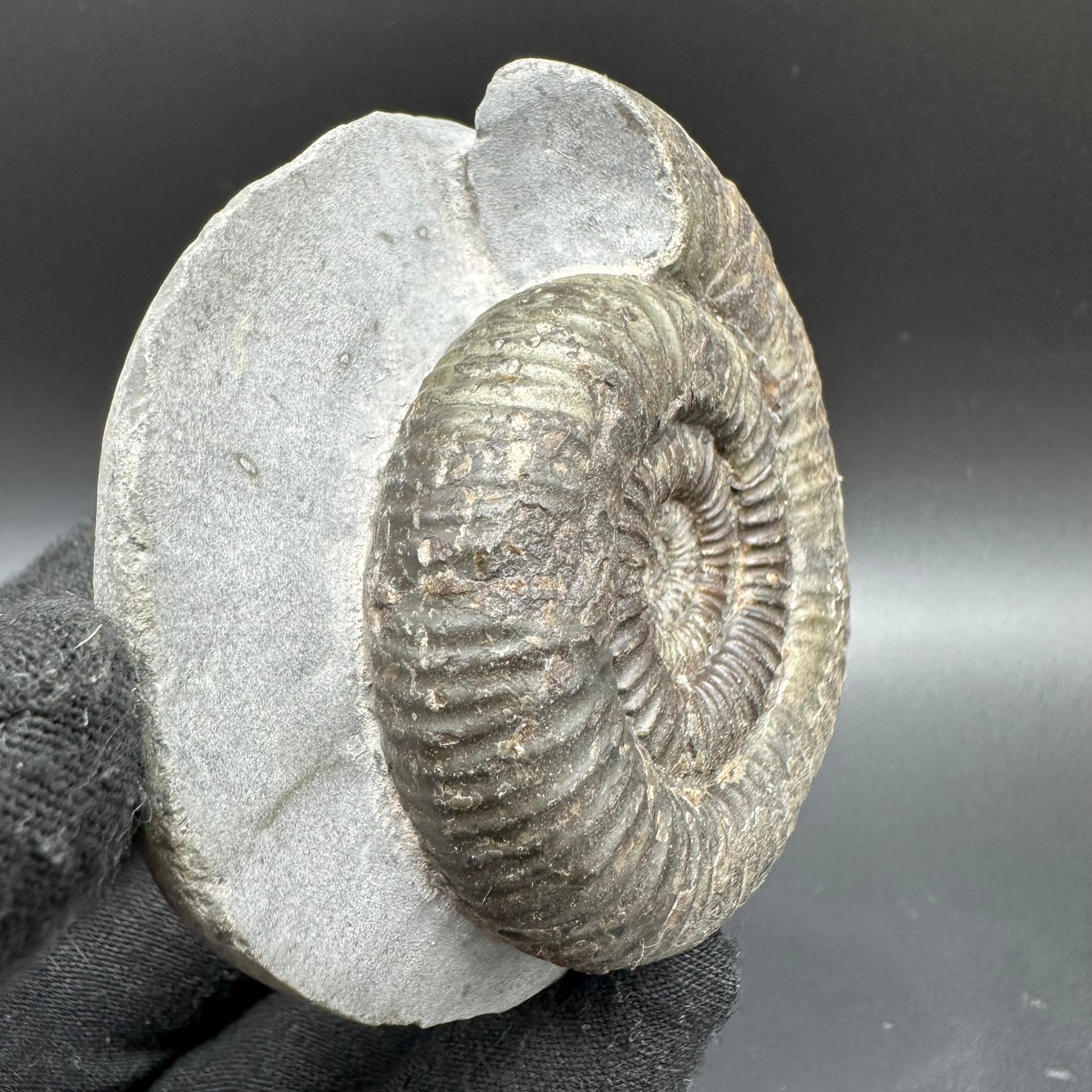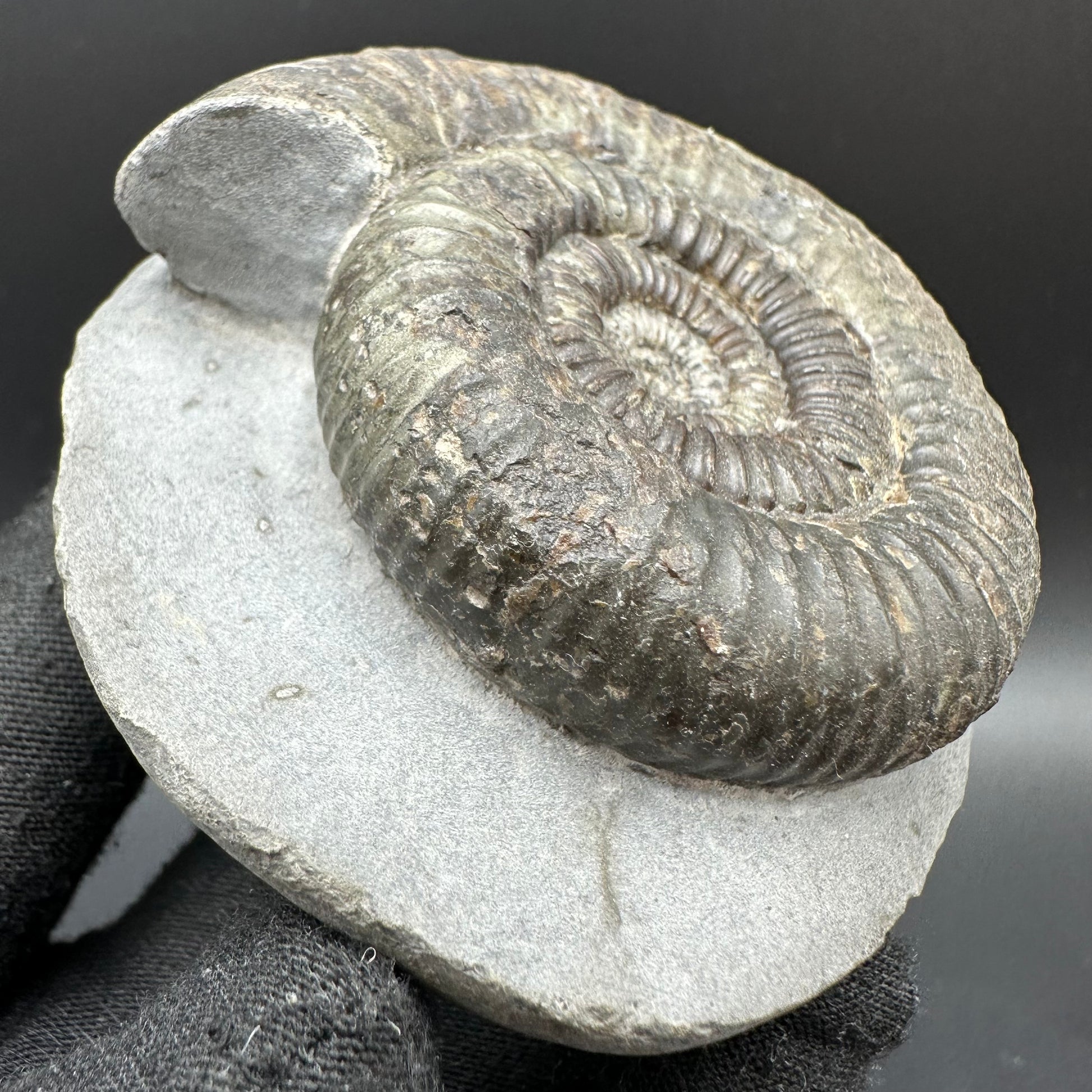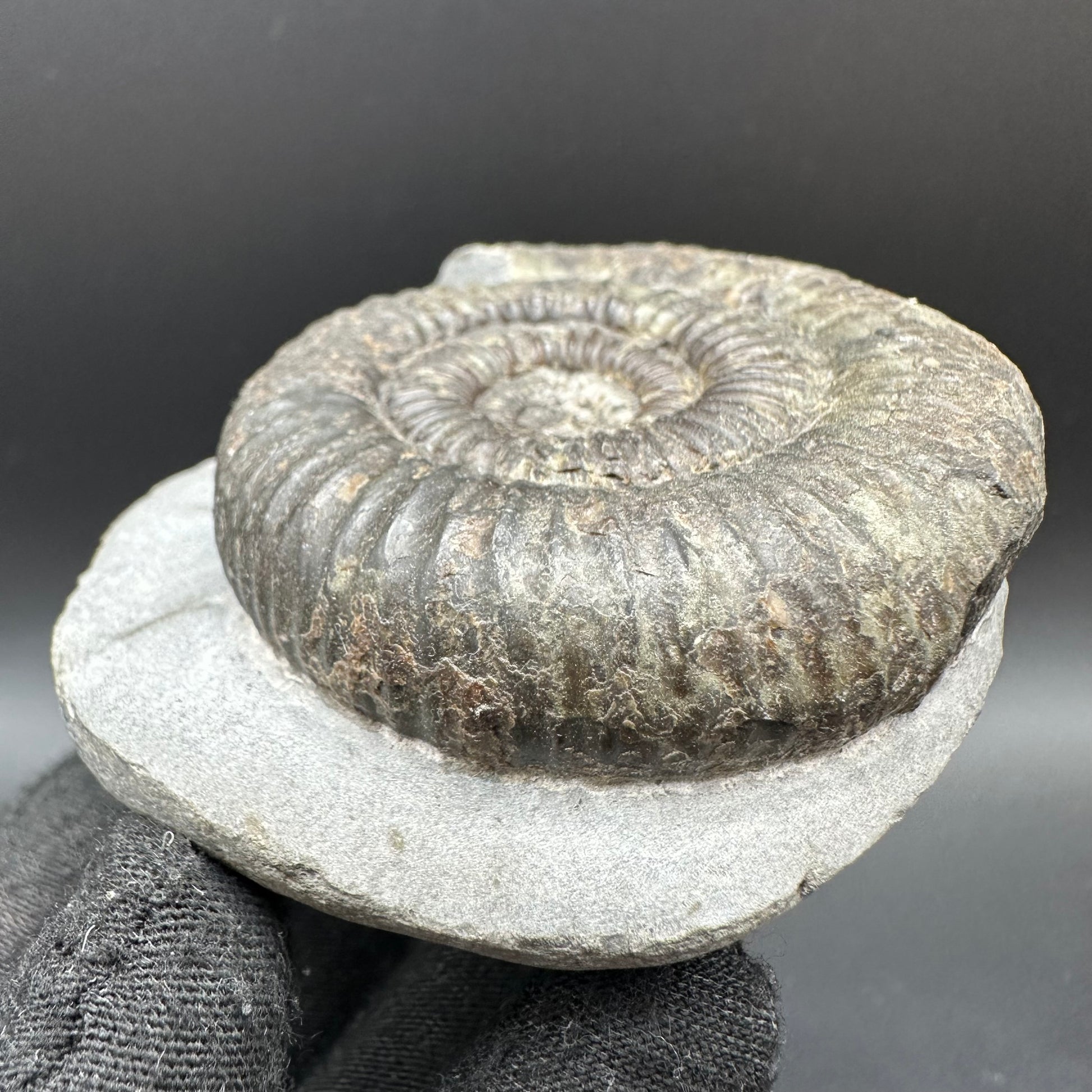 Catacoeloceras Sp. ammonite fossil with box and stand- Whitby, North Yorkshire Jurassic Coast Yorkshire Fossils