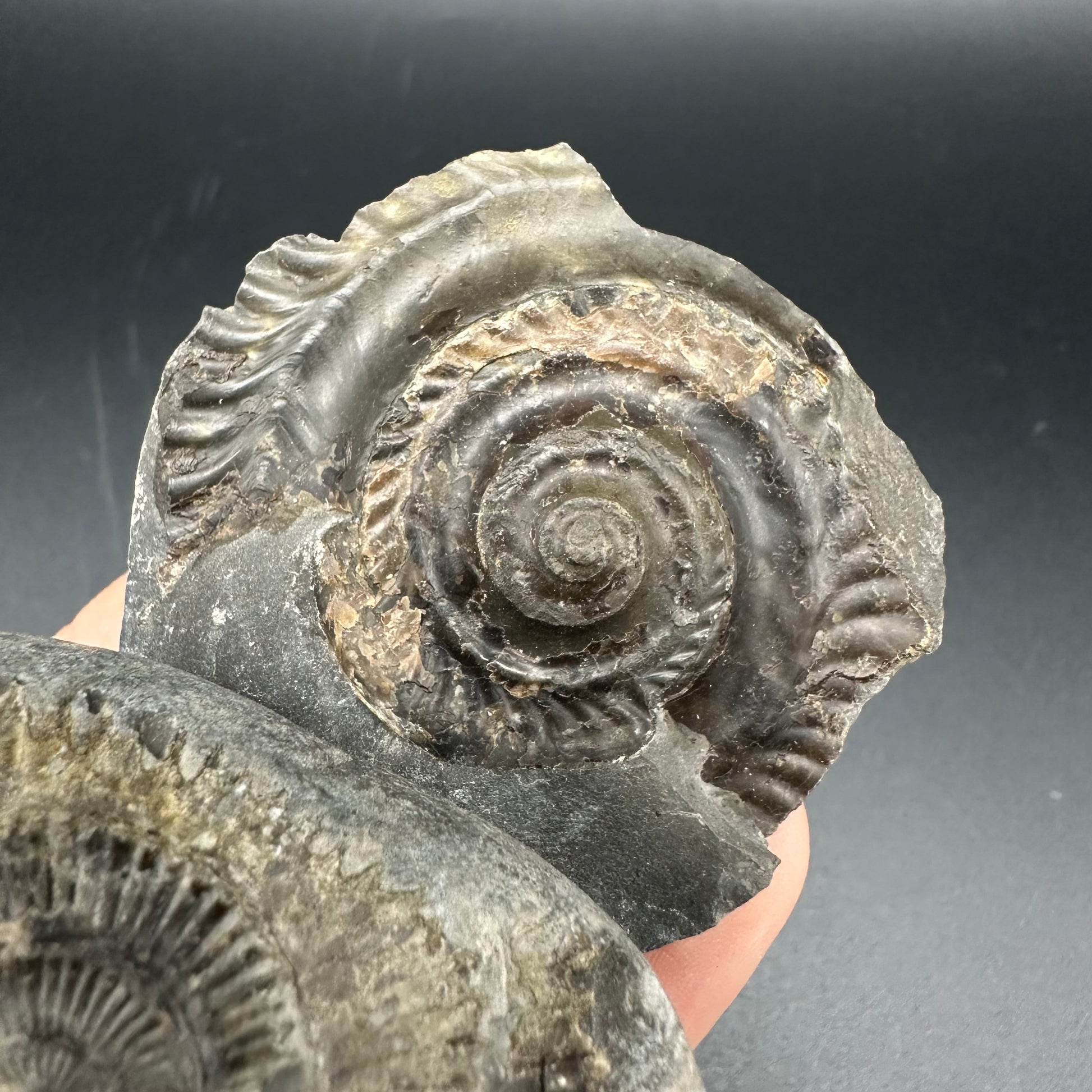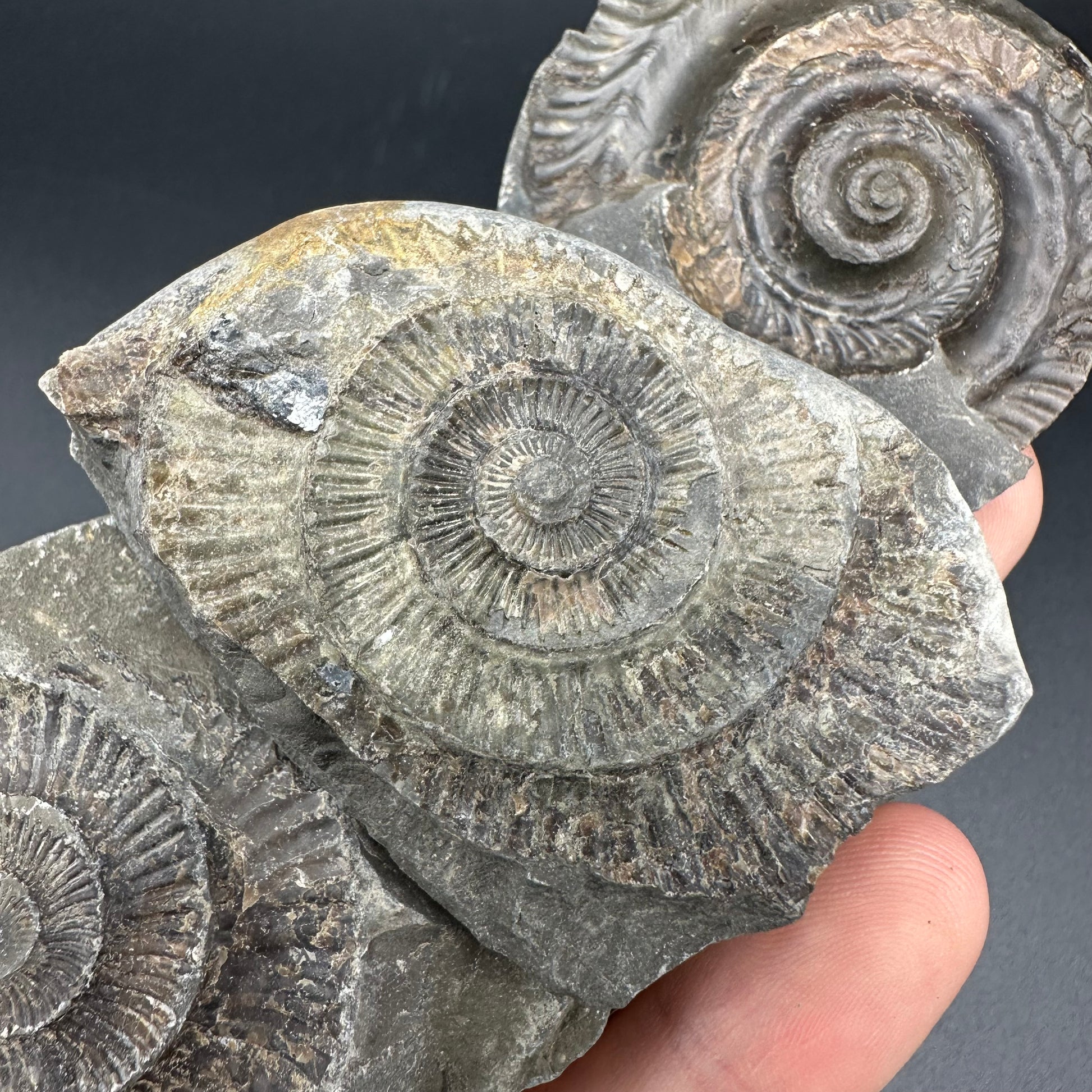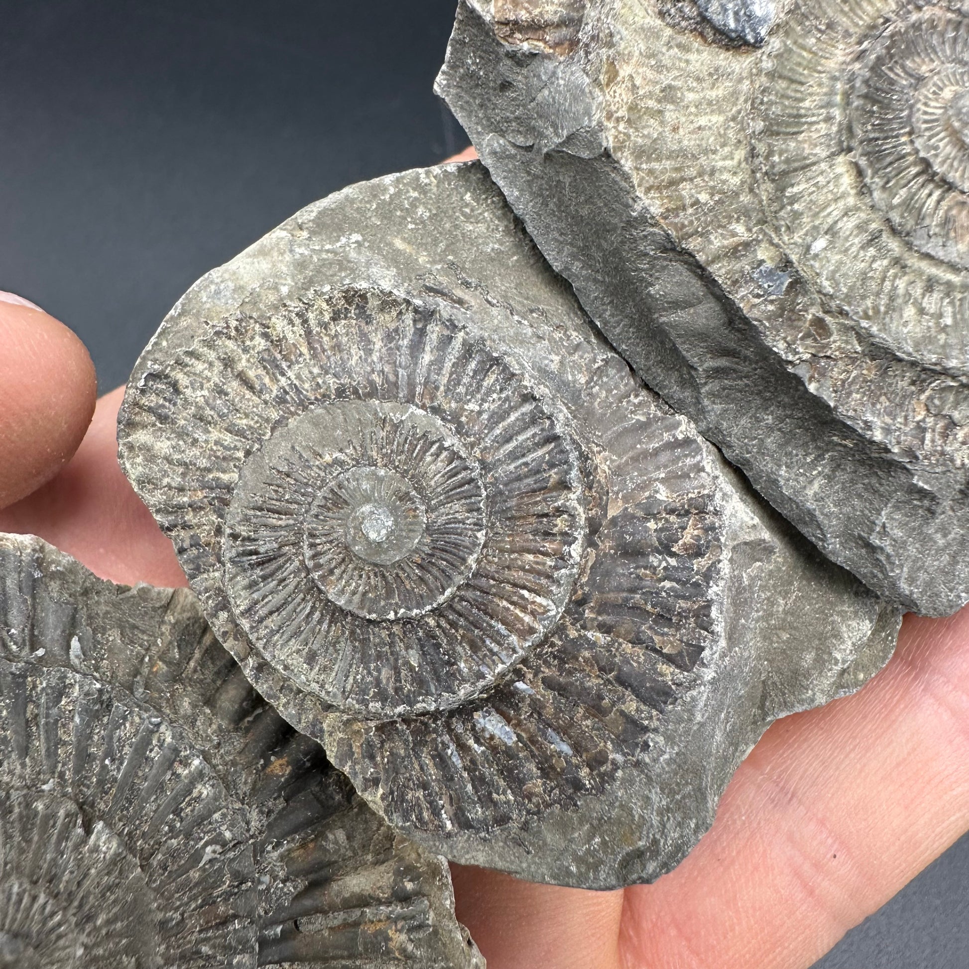 Dactylioceras imprint (negative) bundle ammonite shell fossil with box - Whitby, North Yorkshire, Yorkshire Fossils