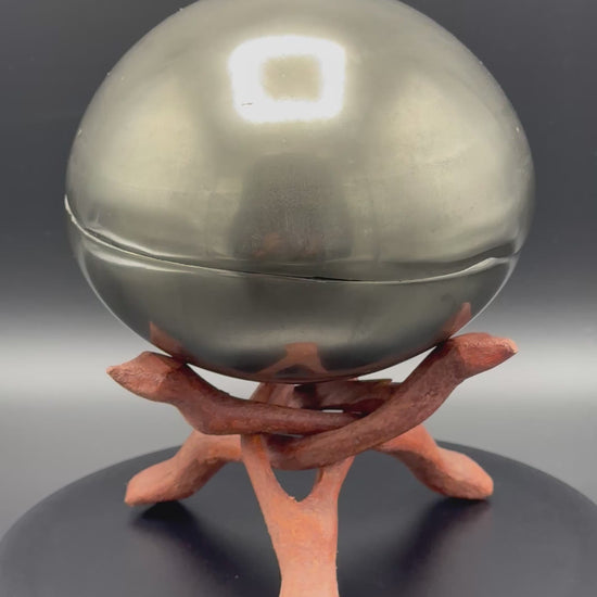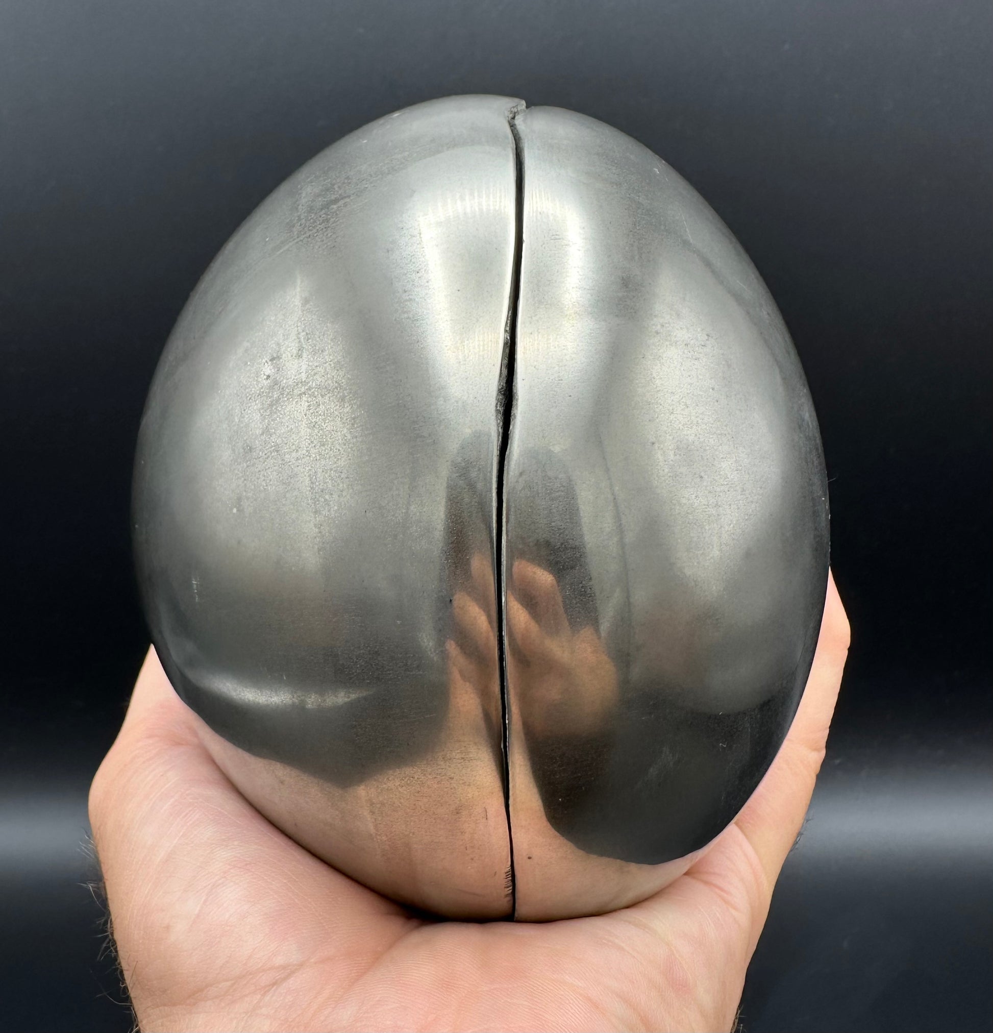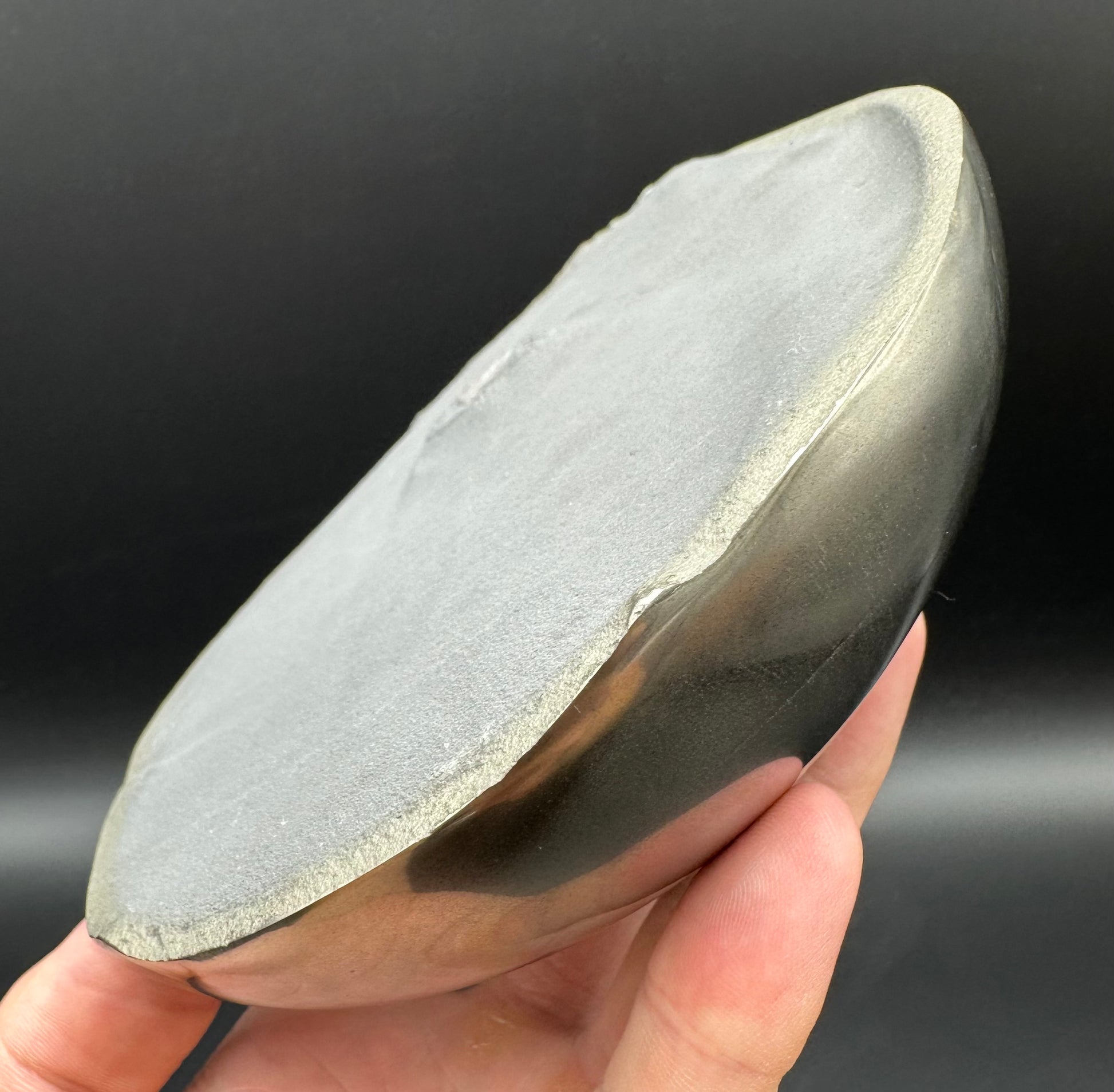 Golden Eggs are rare fossil bearing limestone nodules with a naturally occurring iron pyrite shell, commonly known as “fools gold”. Few nodules contain the Eleganticeras elegantulum ammonites we expect to see and even fewer are good enough to reach the final polishing process. The polishing stage takes many hours but eventually we are left with this luxurious golden shine.