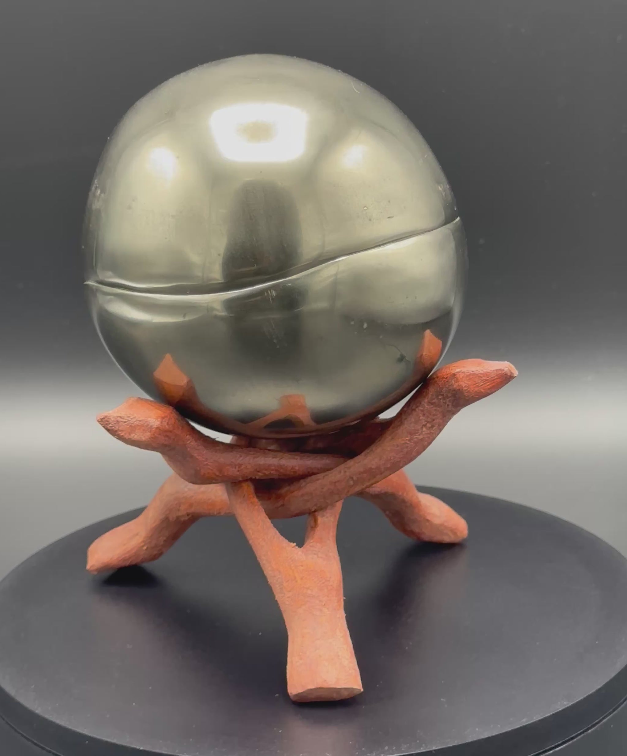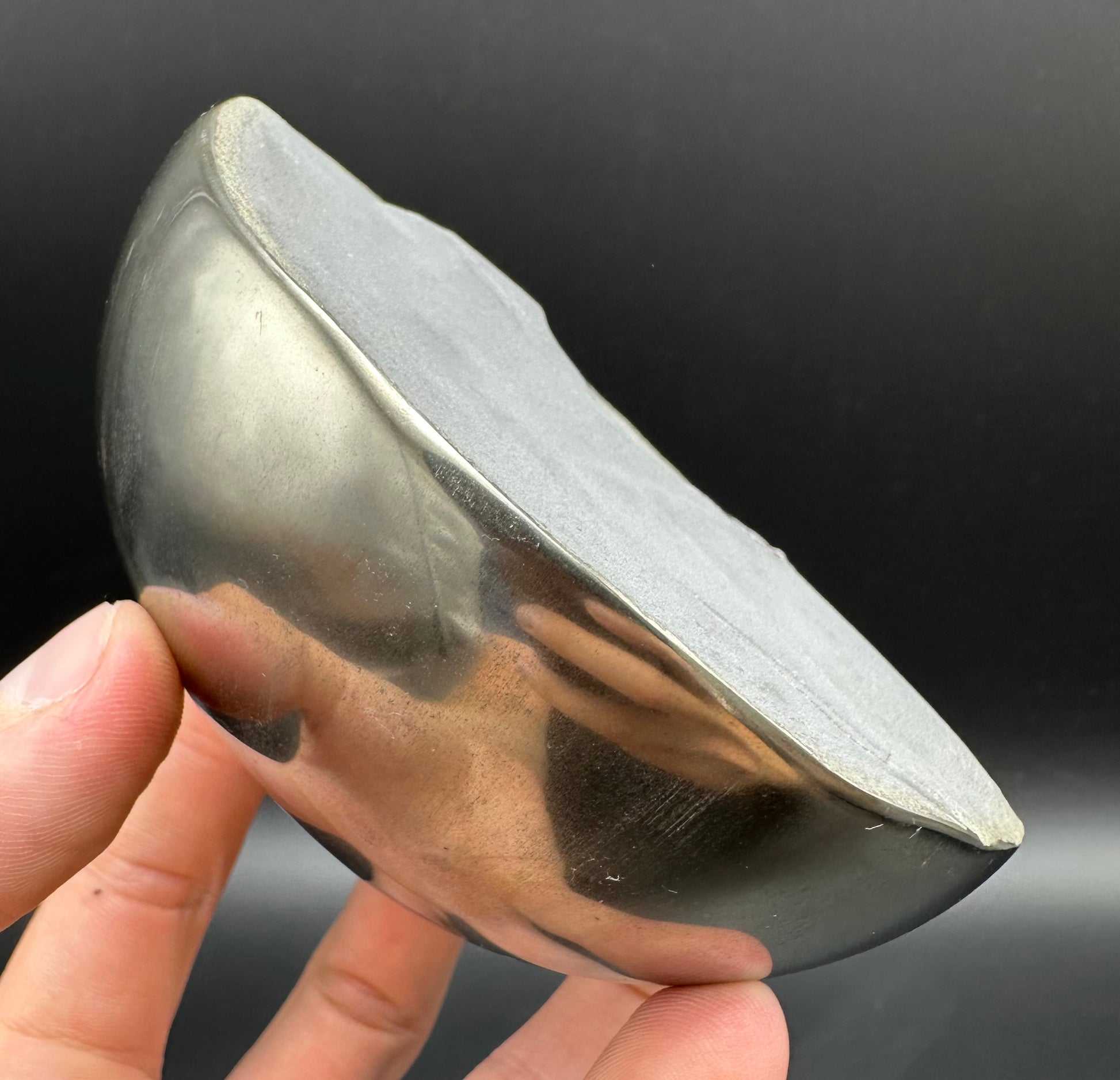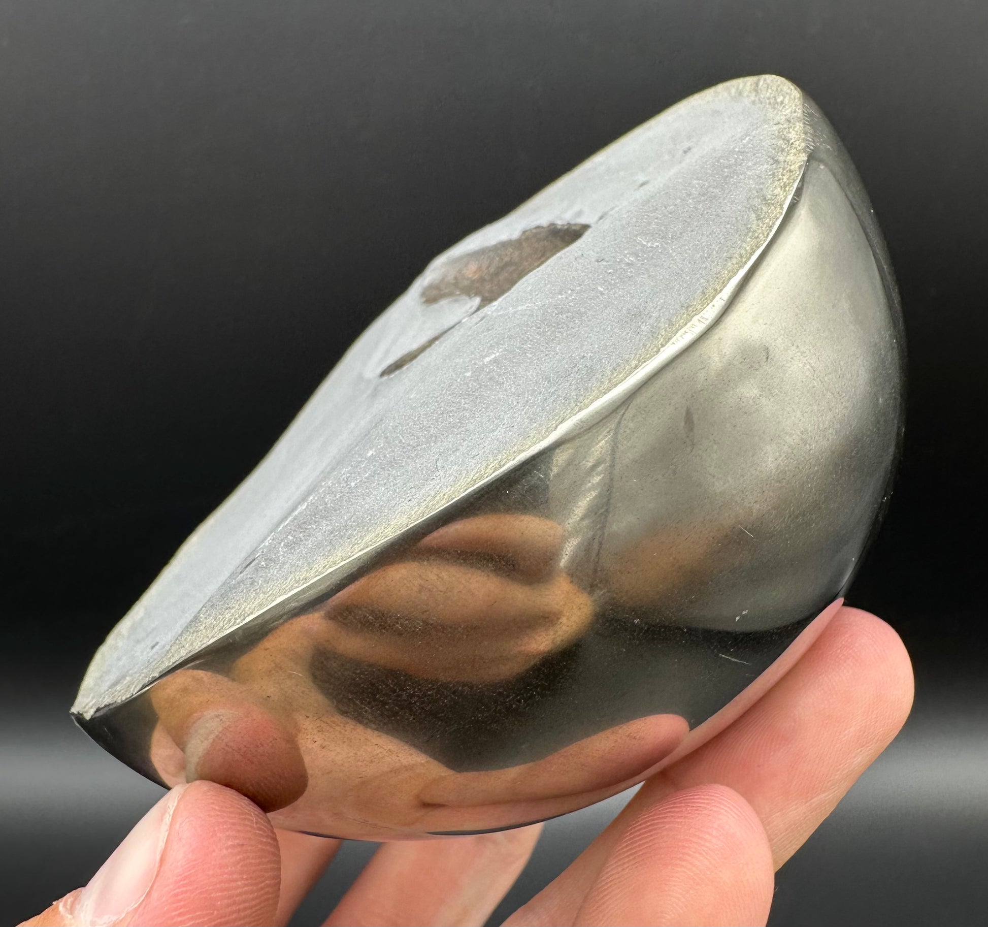 Golden Eggs are rare fossil bearing limestone nodules with a naturally occurring iron pyrite shell, commonly known as “fools gold”. Few nodules contain the Eleganticeras elegantulum ammonites we expect to see and even fewer are good enough to reach the final polishing process. The polishing stage takes many hours but eventually we are left with this luxurious golden shine.
