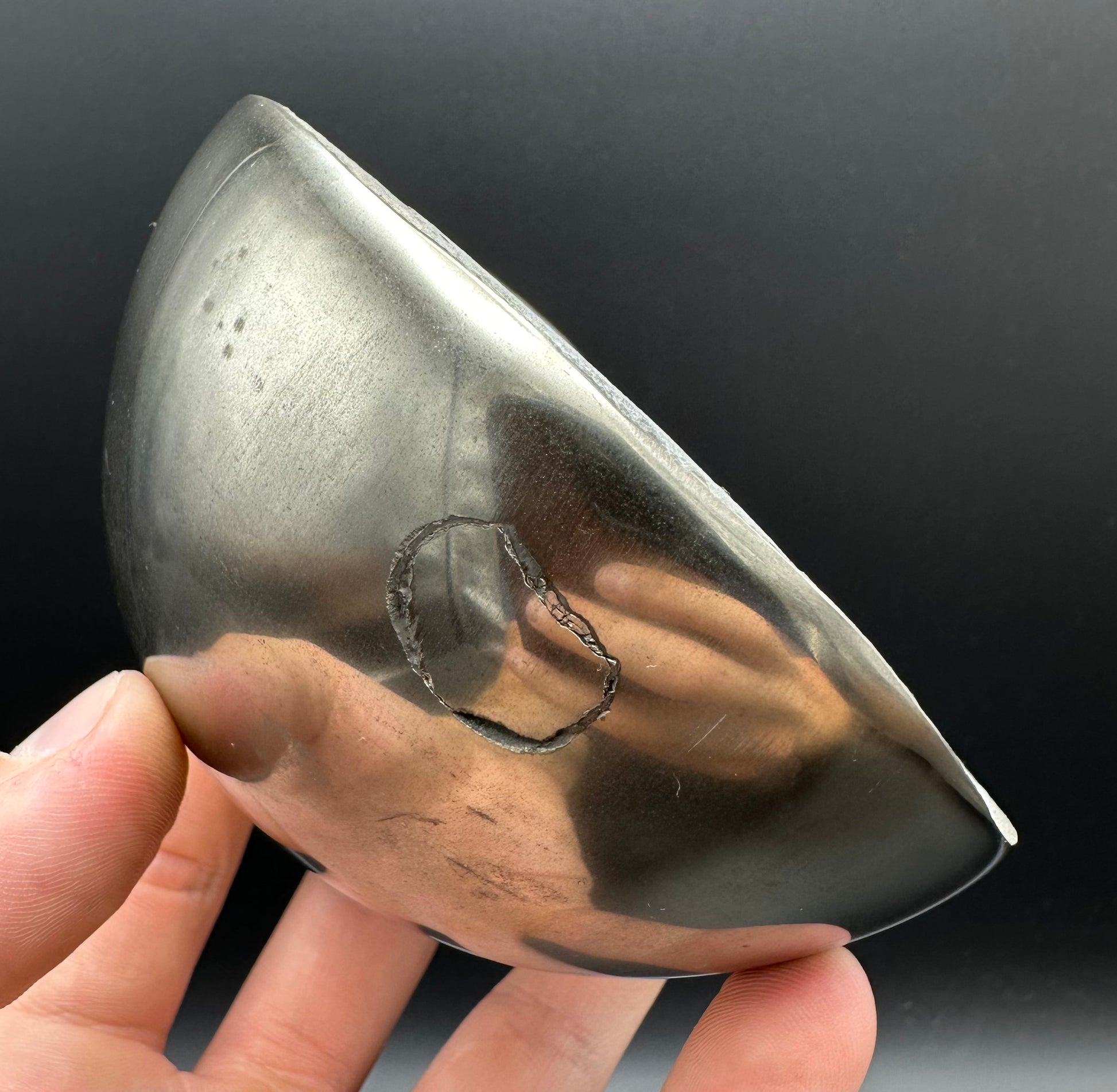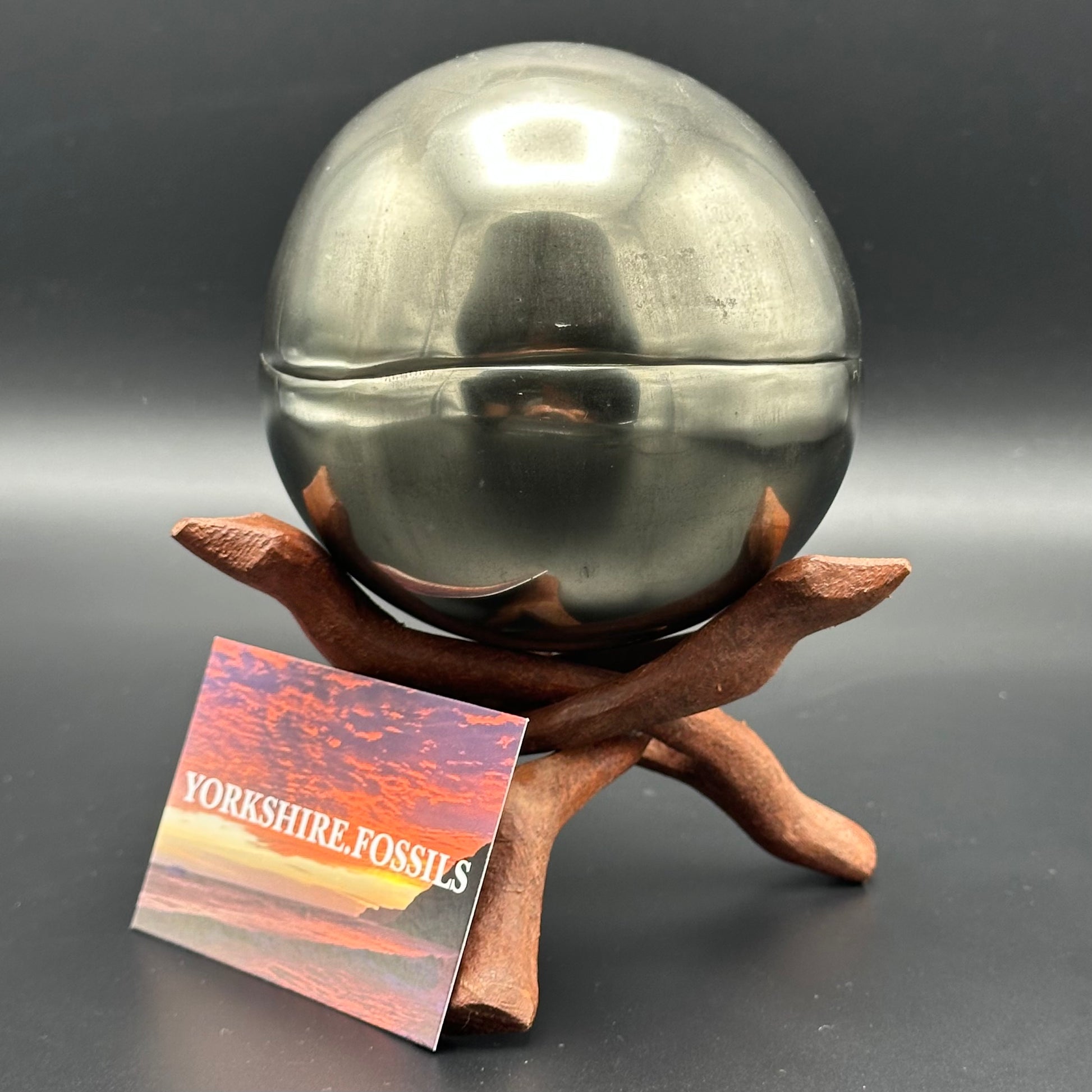 As these specimens are so hard to come by we have also taken the time to prepare some IMPLANT specimens where we have taken a Yorkshire or Madagascan ammonite or bone and set it into one of the empty Golden Egg nodules. Each specimen will be labelled with either (GENUINE) or (IMPLANT) so you know whether you are looking at a natural ammonite in the rock or one we have set into the stone. Both take an equal amount of time to prepare and are amazing display and conversations pieces. Each specimen will come with an information sheet and a polishing cloth to keep your fossil in great condition. Before handling the specimen we recommend either washing your hands or wearing gloves to avoid grease marks and tarnishing the polished pyrite layer to keep the specimen in the best condition possible. Also, avoid getting the specimen wet or storing in a damp environment, keep dry to keep the specimen in the best condition.