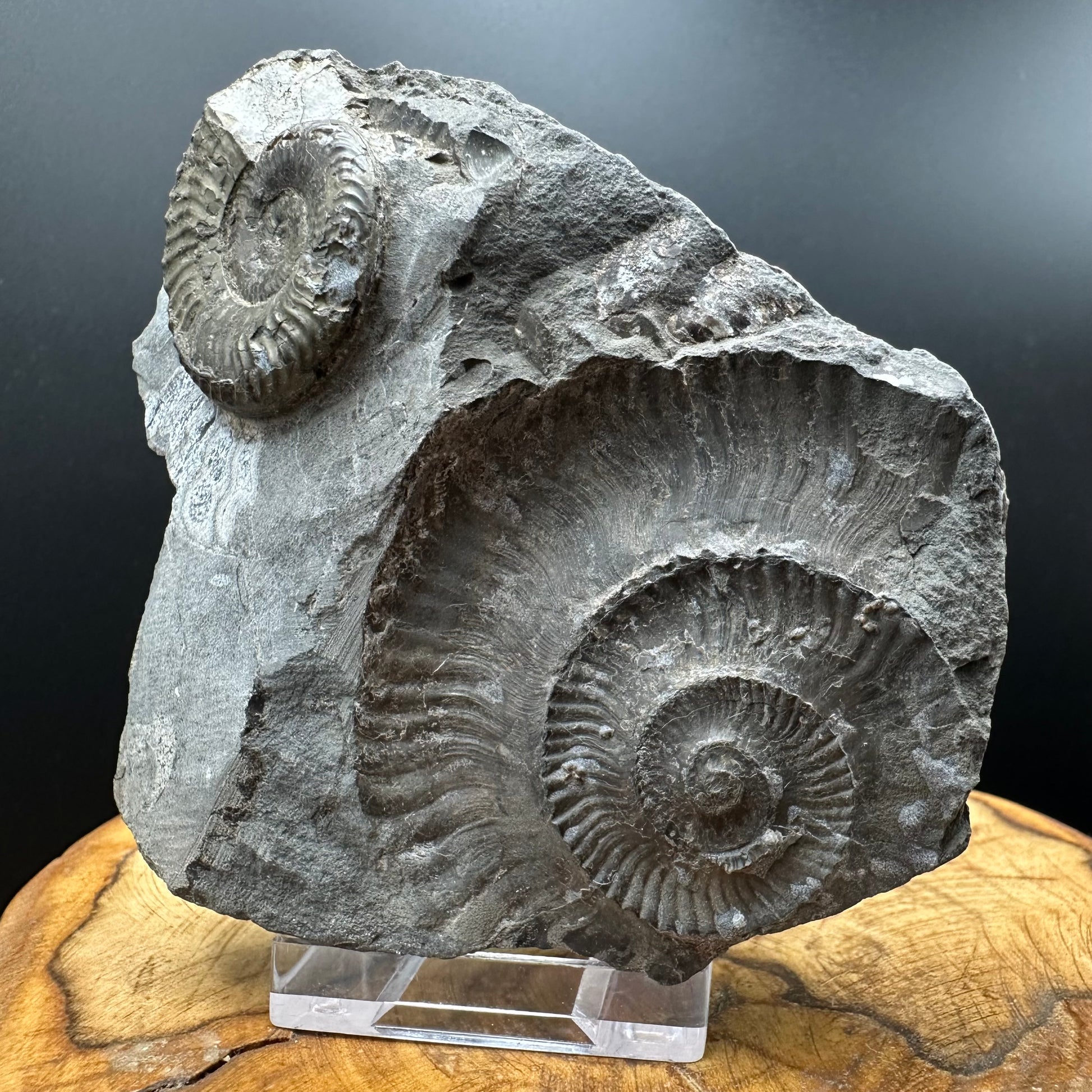 Grammoceras thoaurense Ammonite shell fossil with box and stand - Whitby, North Yorkshire, Yorkshire Fossils from the Jurassic Coast