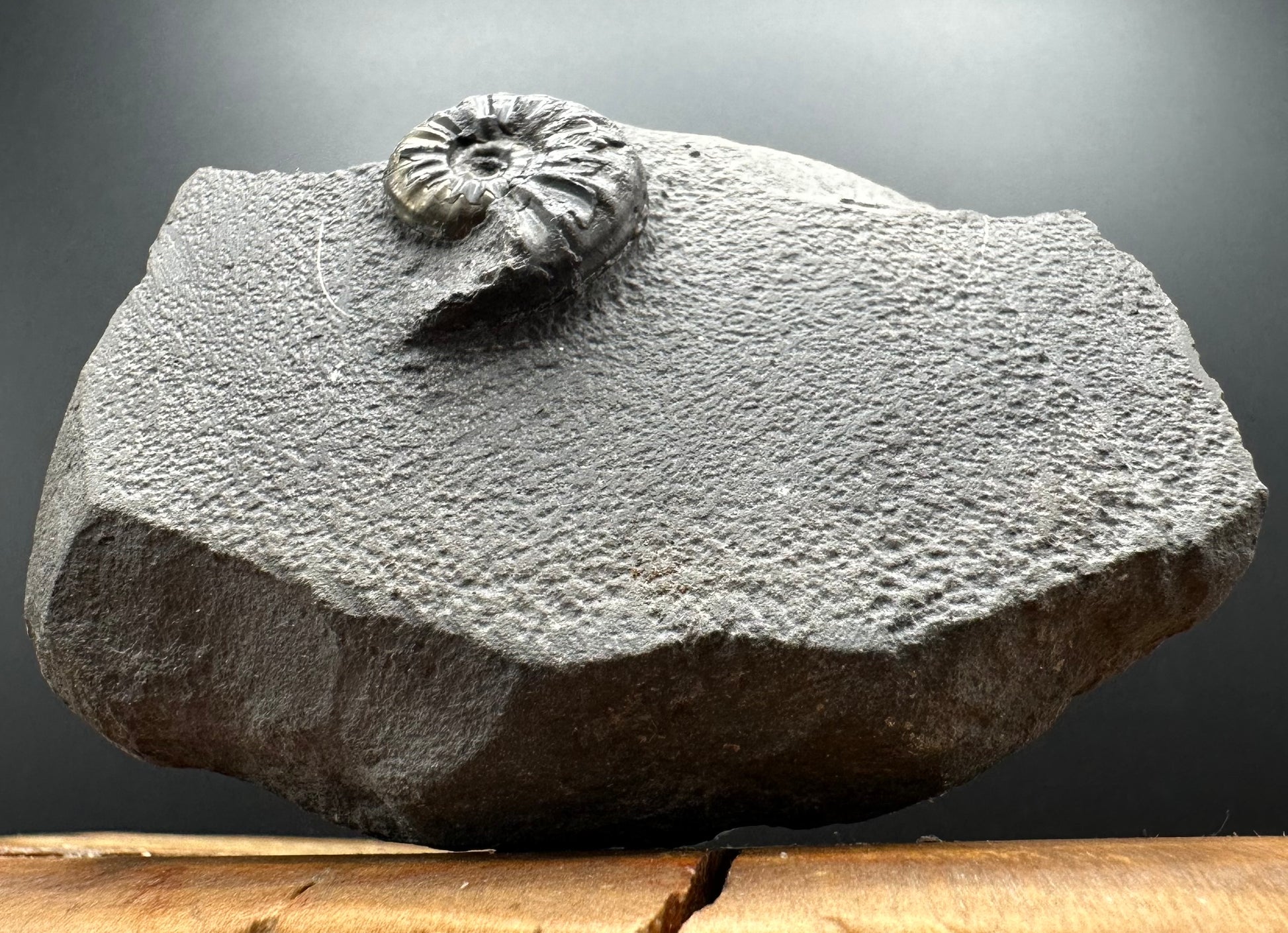 Agassiceras sp. ammonite fossil with box and stand - Whitby, North Yorkshire Jurassic Coast Yorkshire Fossils