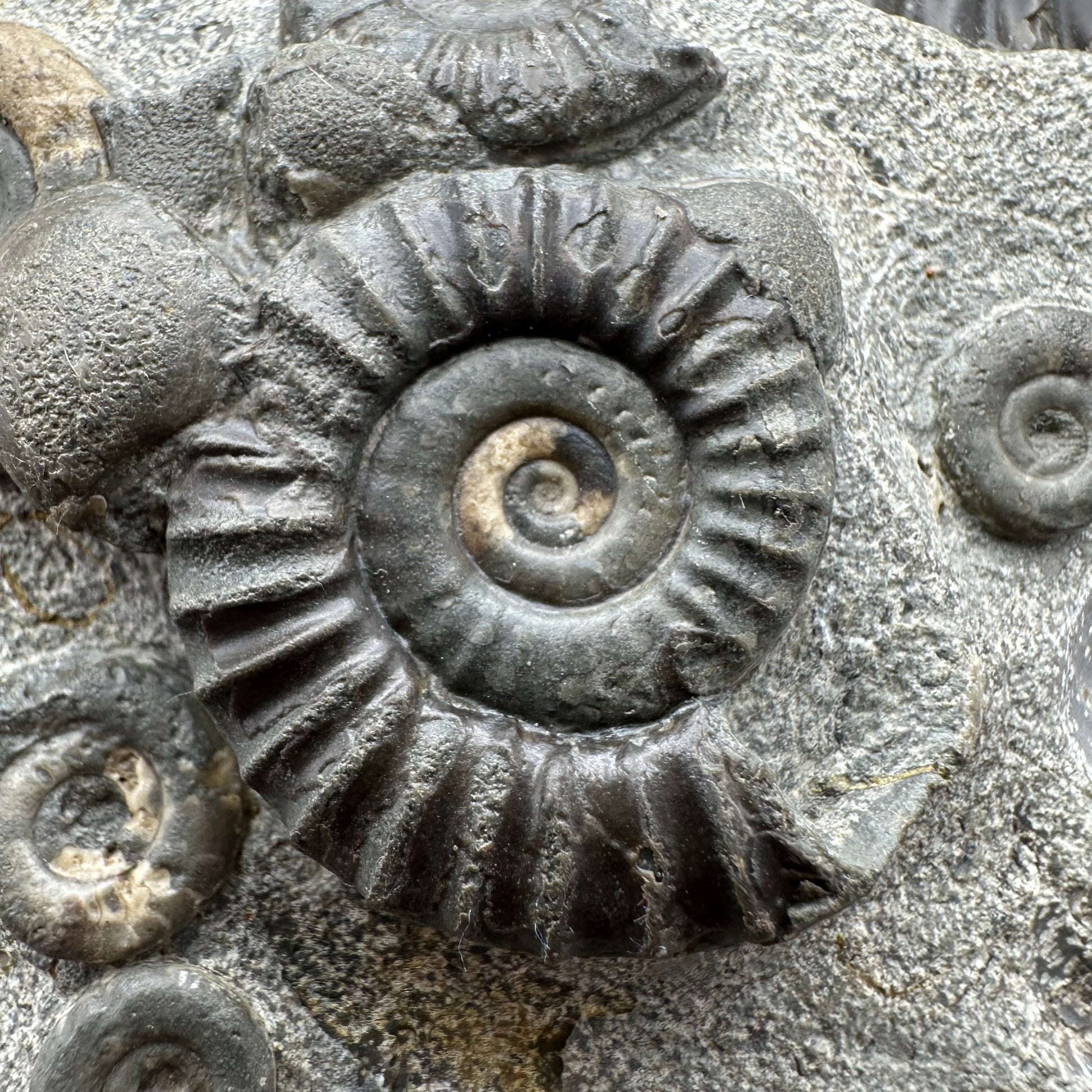 Arnioceras ammonite shell fossil with stand - Whitby, North Yorkshire Jurassic Coast Yorkshire Fossils