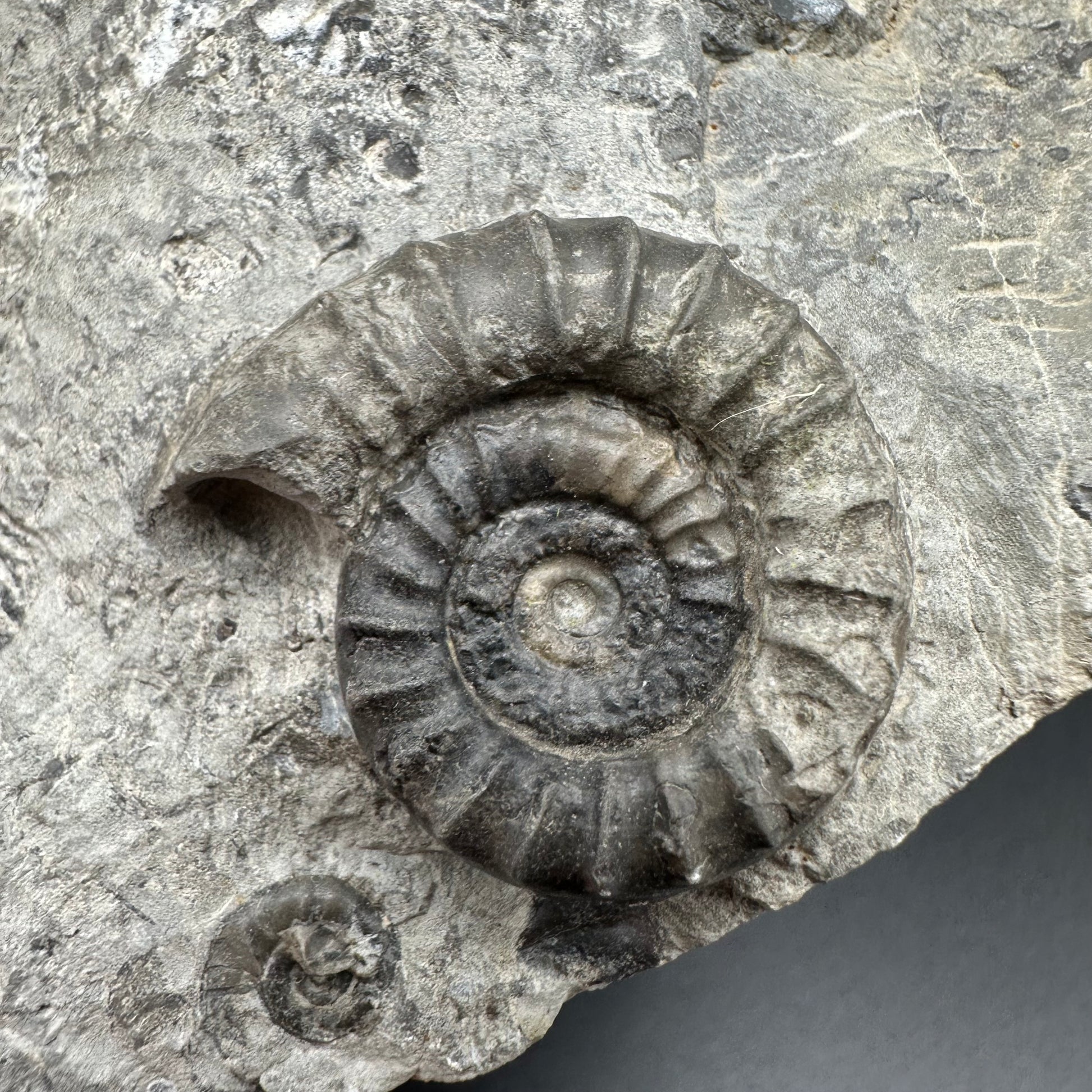 Arnioceras ammonite shell fossil with stand - Whitby, North Yorkshire Jurassic Coast Yorkshire Fossils