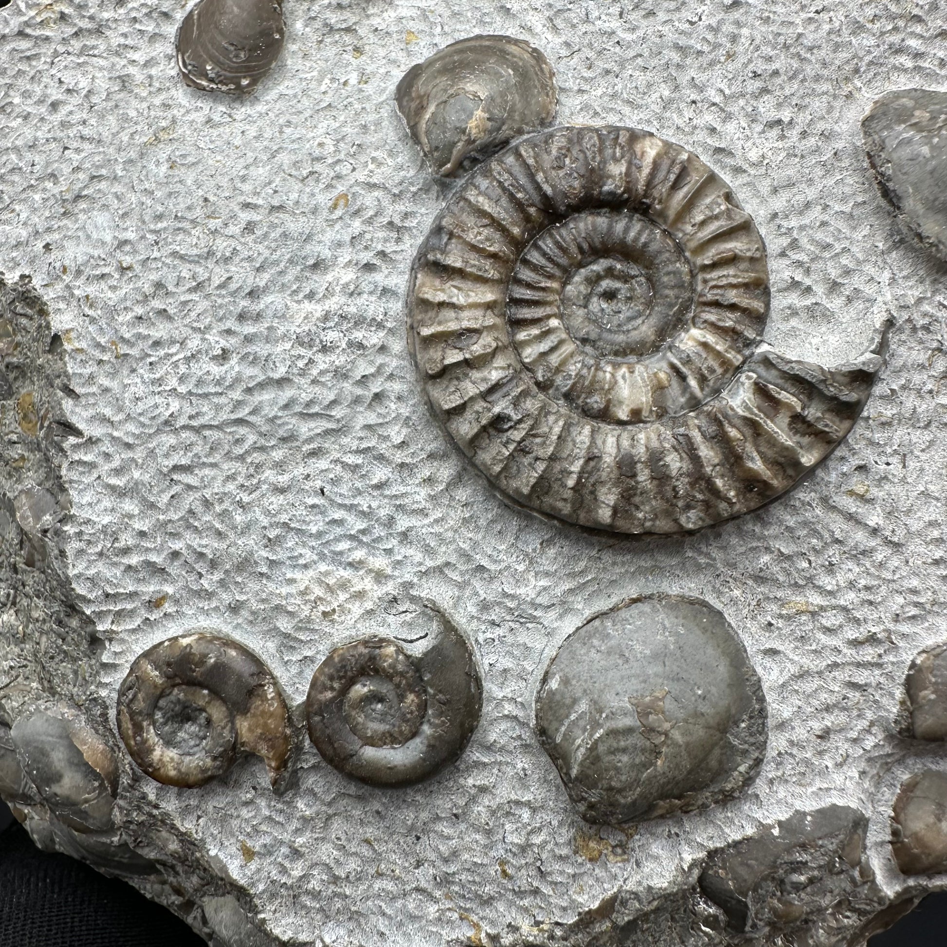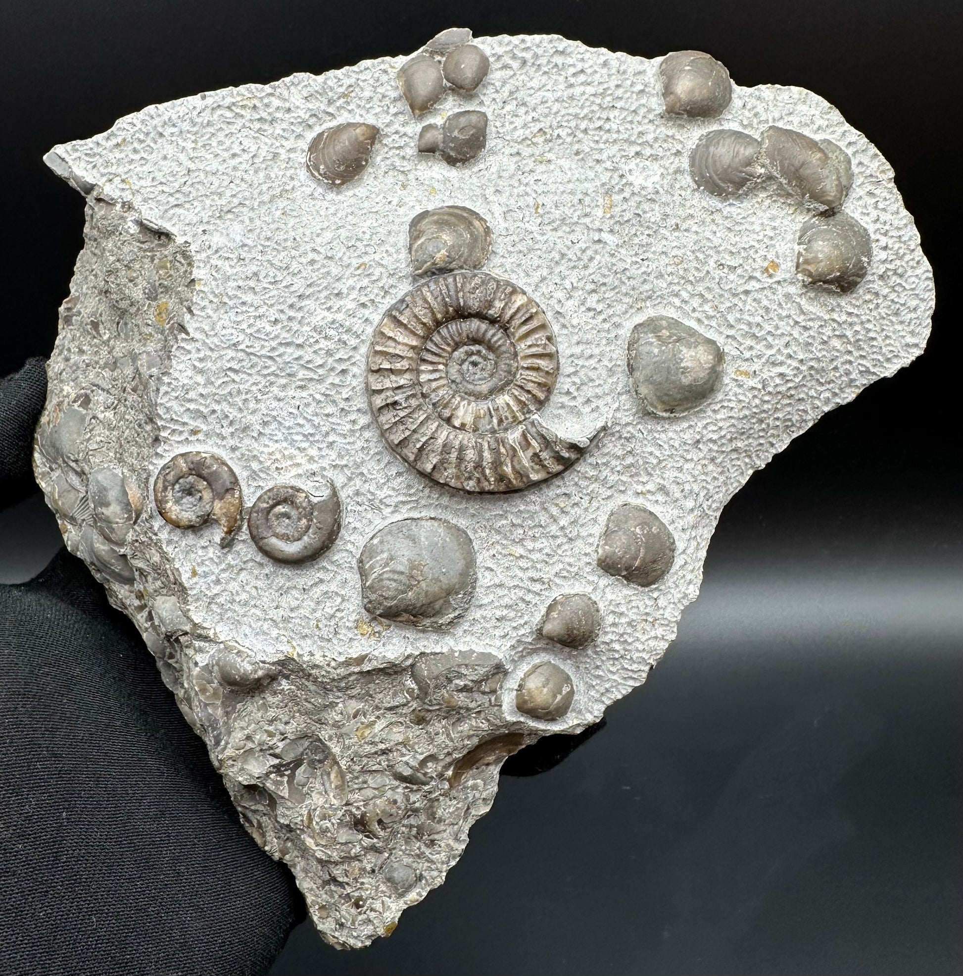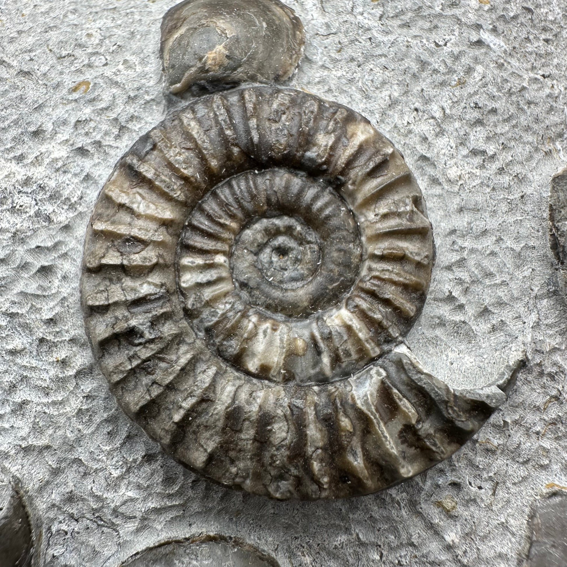 Arnioceras ammonite shell fossil with stand - Whitby, North Yorkshire Jurassic Coast Yorkshire Fossils