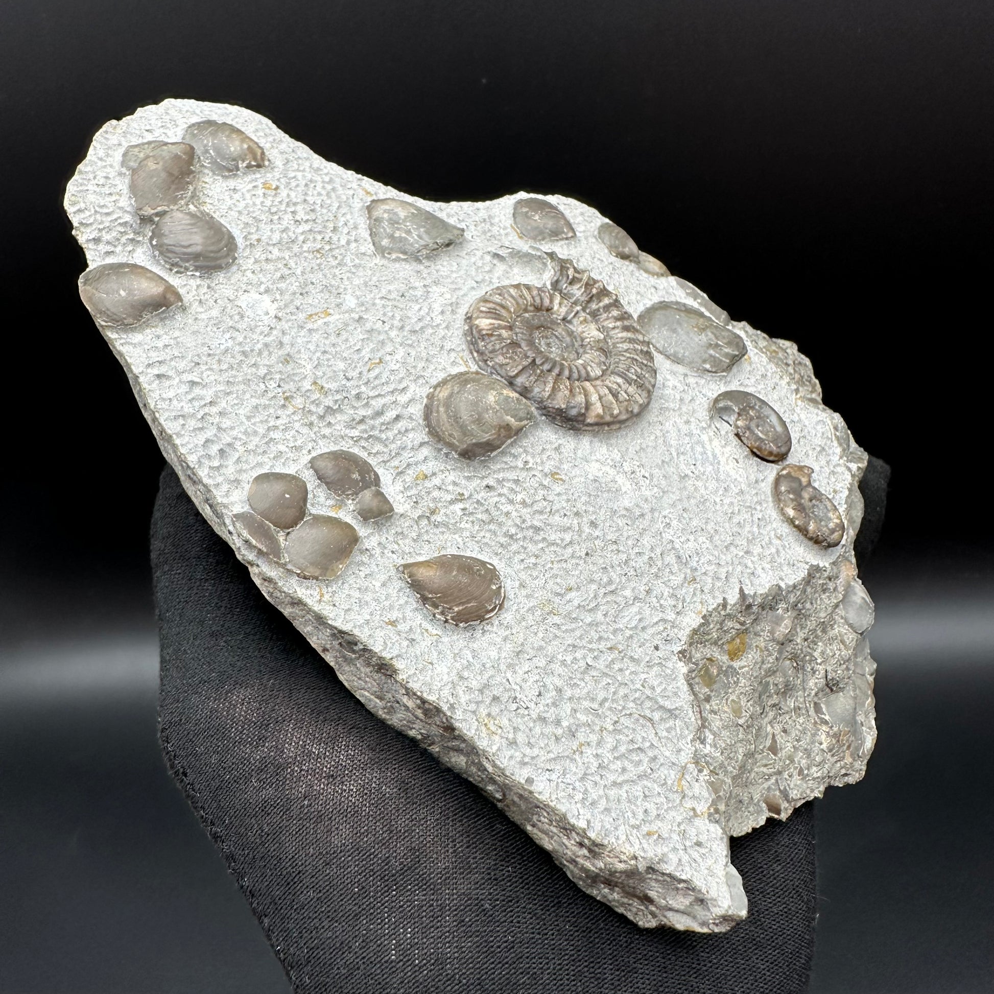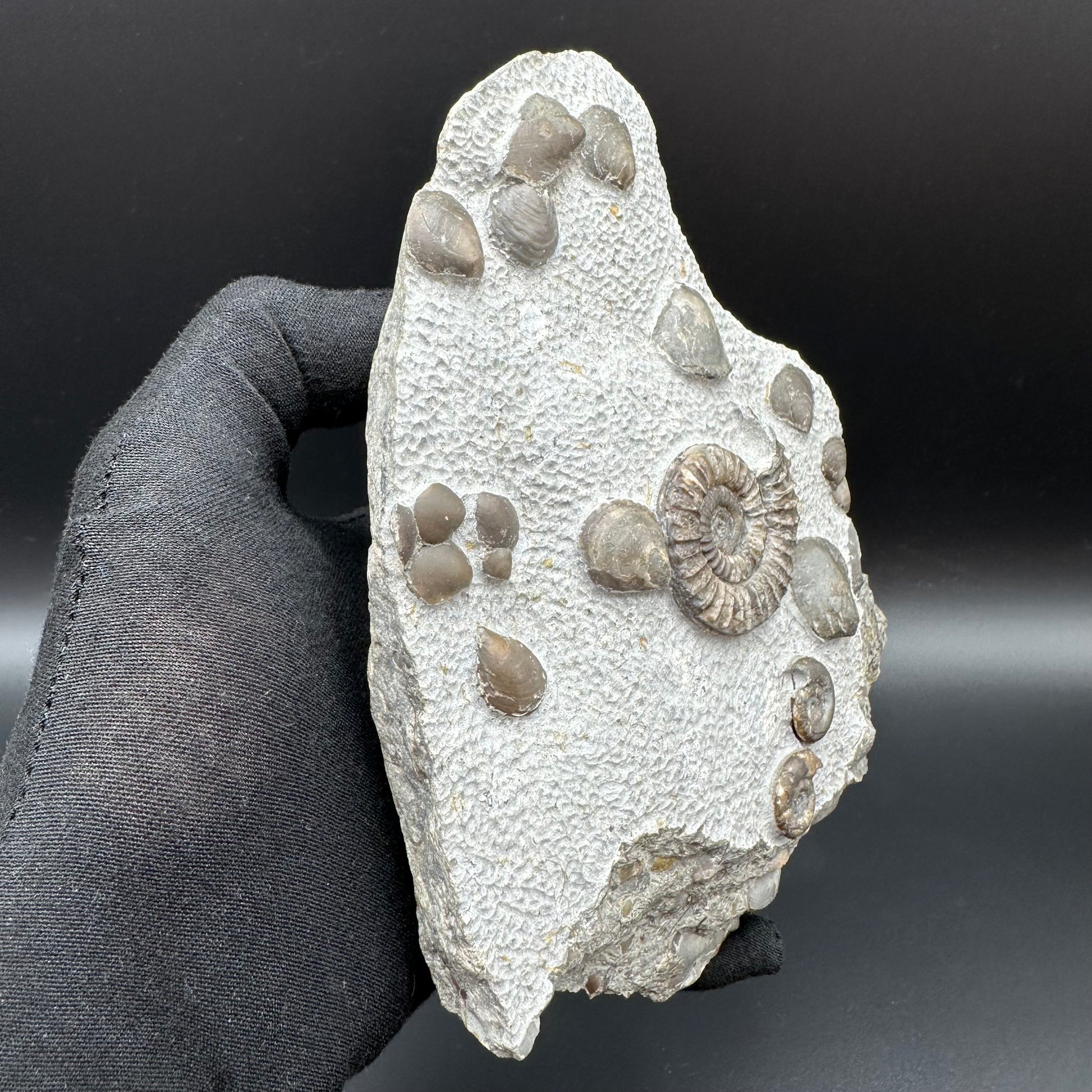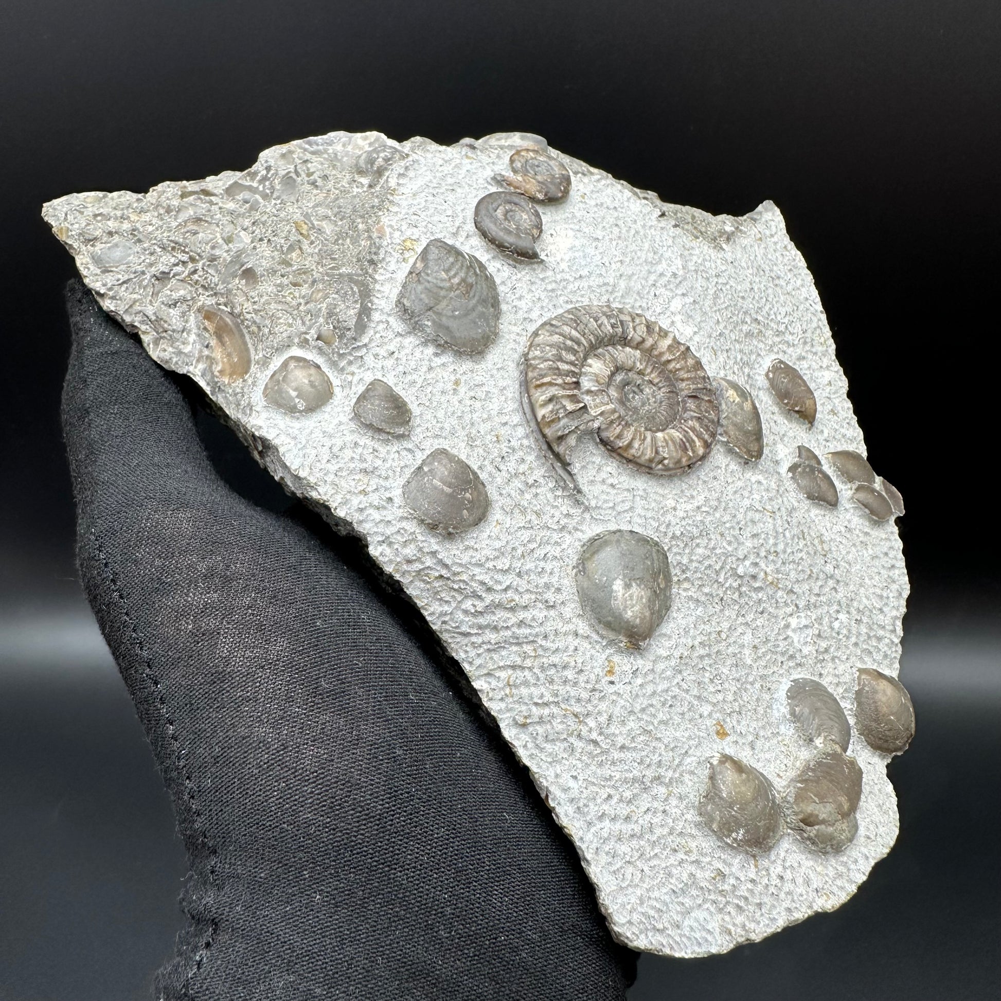 Arnioceras ammonite shell fossil with stand - Whitby, North Yorkshire Jurassic Coast Yorkshire Fossils