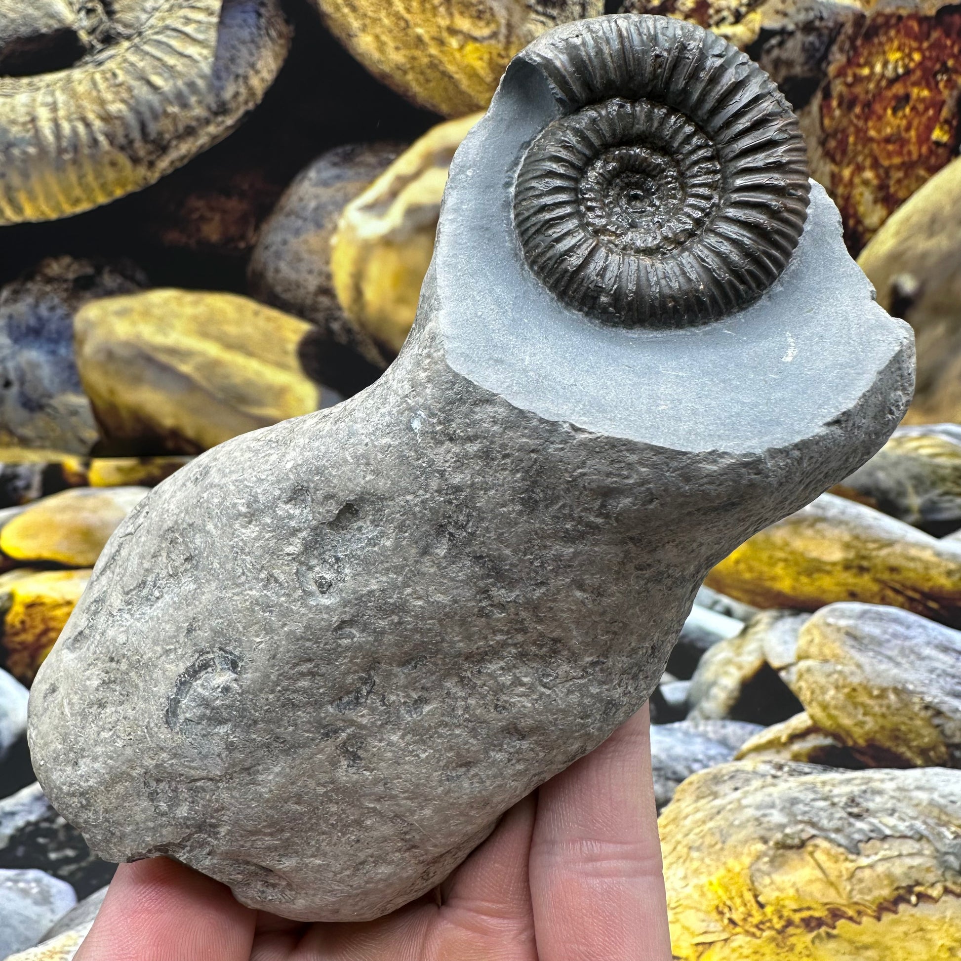 Ammonite shell fossil found near Whitby, North Yorkshire on the Jurassic Coast