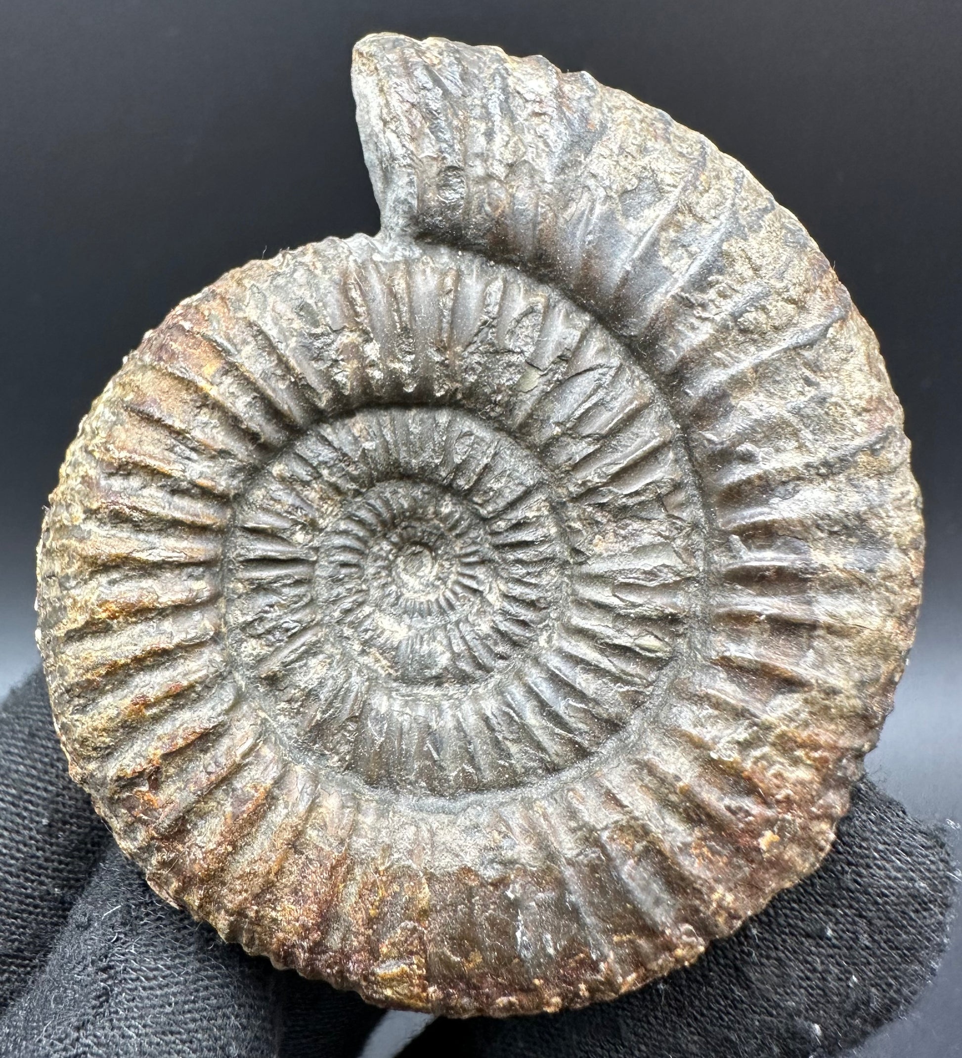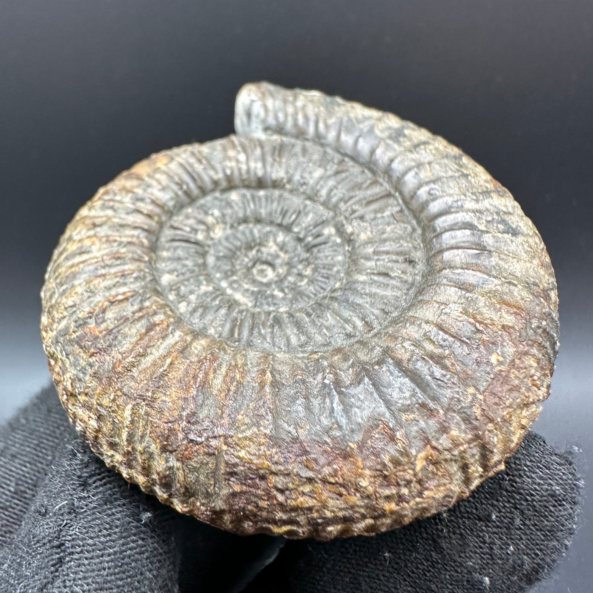 Catacoeloceras Sp. ammonite fossil with box and stand- Whitby, North Yorkshire Jurassic Coast Yorkshire Fossils