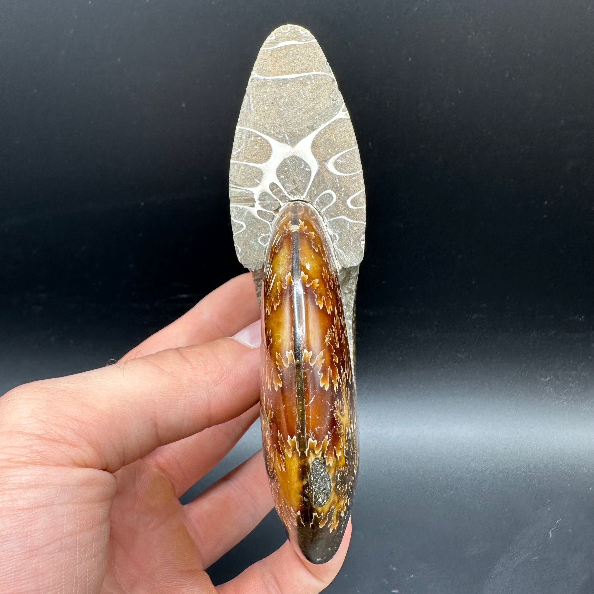 All of our available specimens are collected and sourced by ourselves or local trusted collectors and we can guarantee the fossil you will receive is 100% genuine. You will be made aware of fossils with any restoration in the description of the fossil.