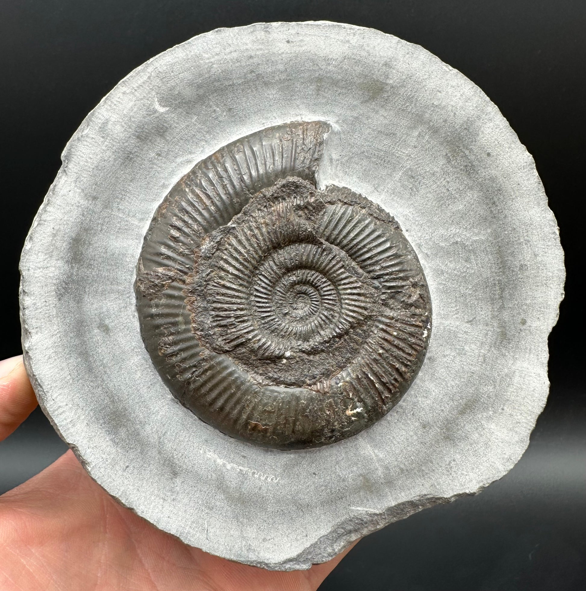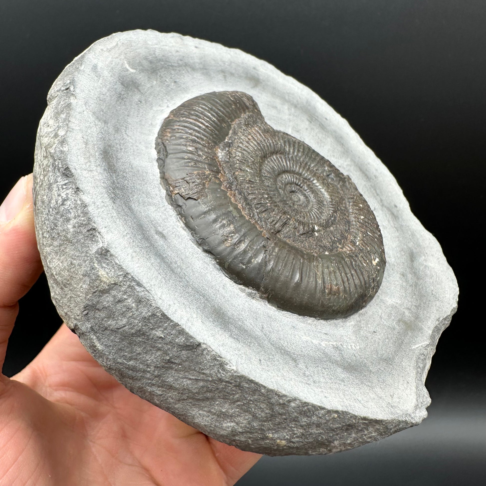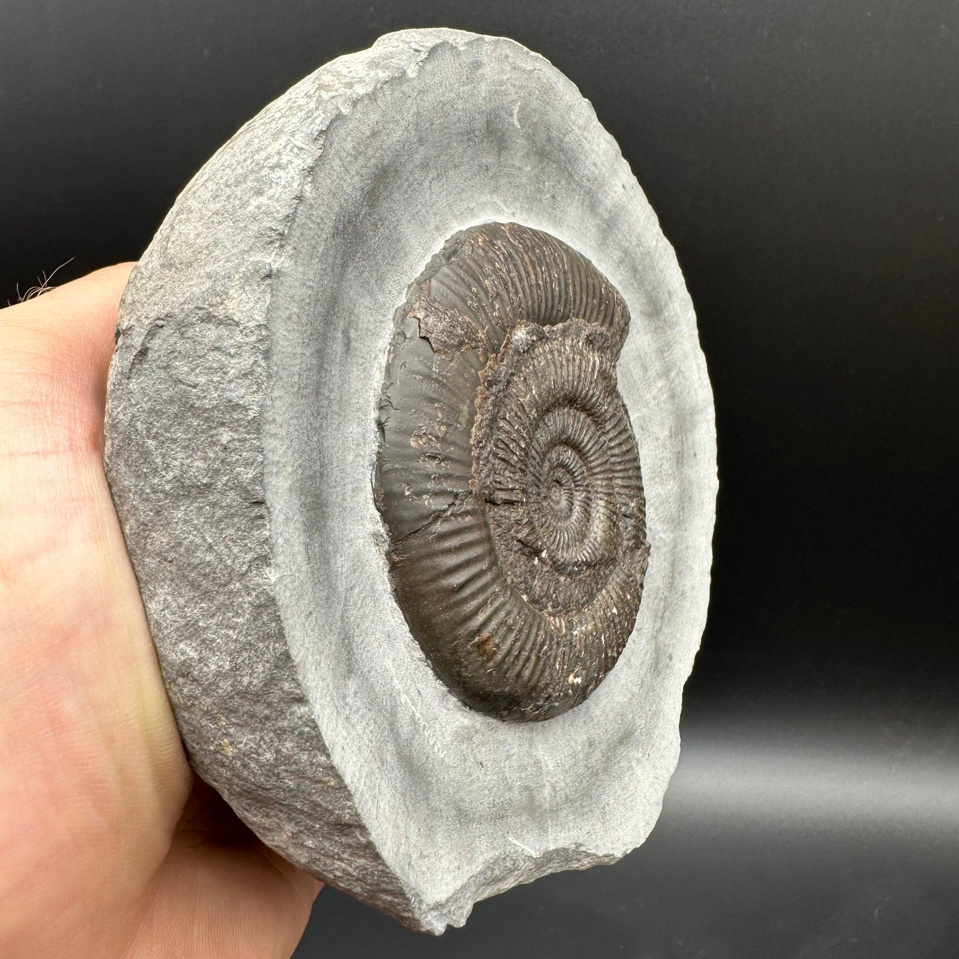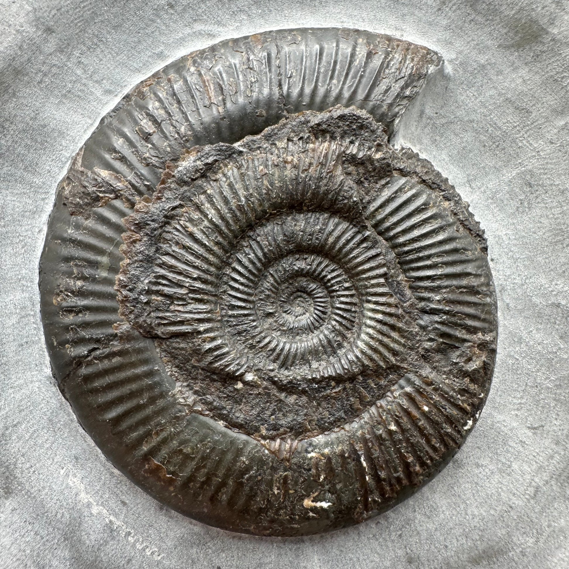 Ammonite fossil found near Whitby, North Yorkshire on the Jurassic coast