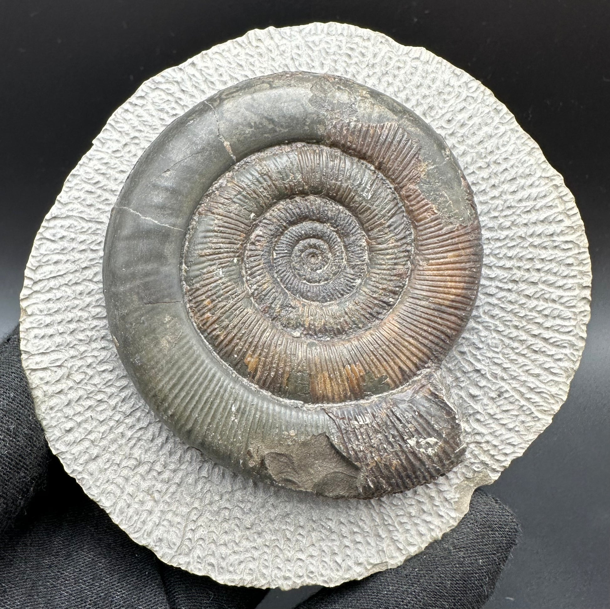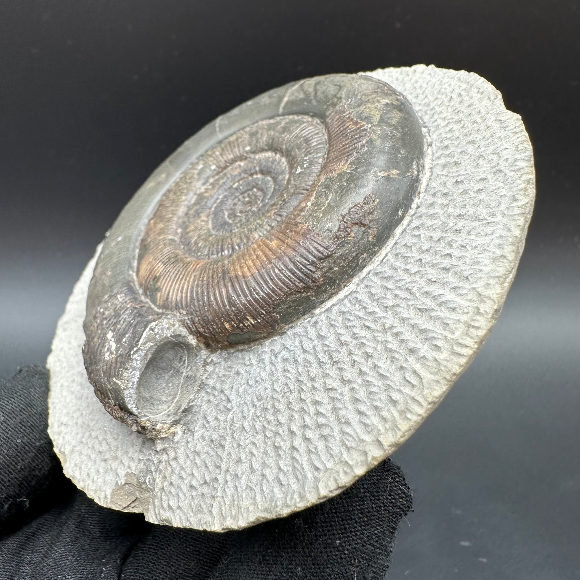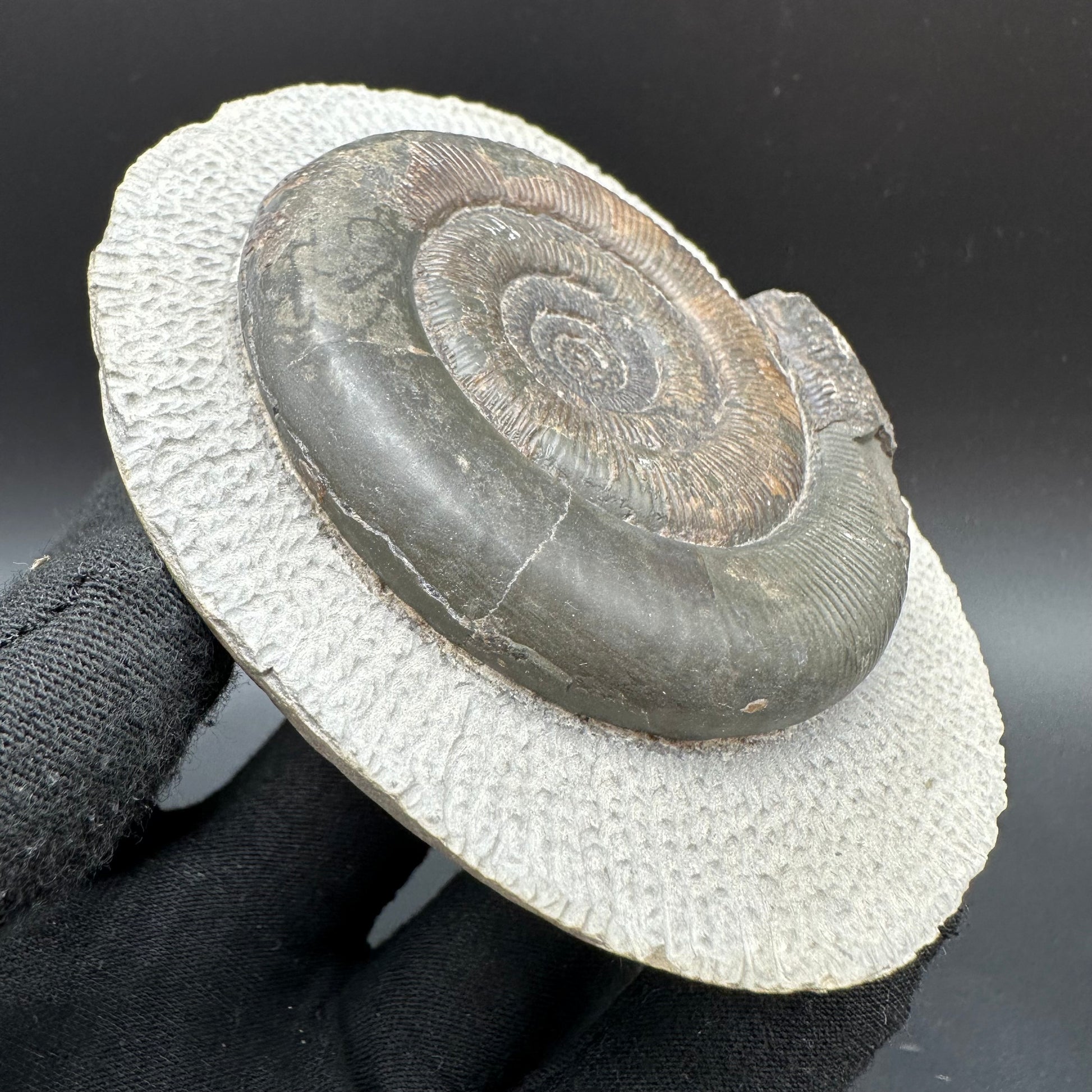 Dactylioceras tenuicostatum Ammonite fossil with box and stand - Whitby, North Yorkshire Jurassic Coast