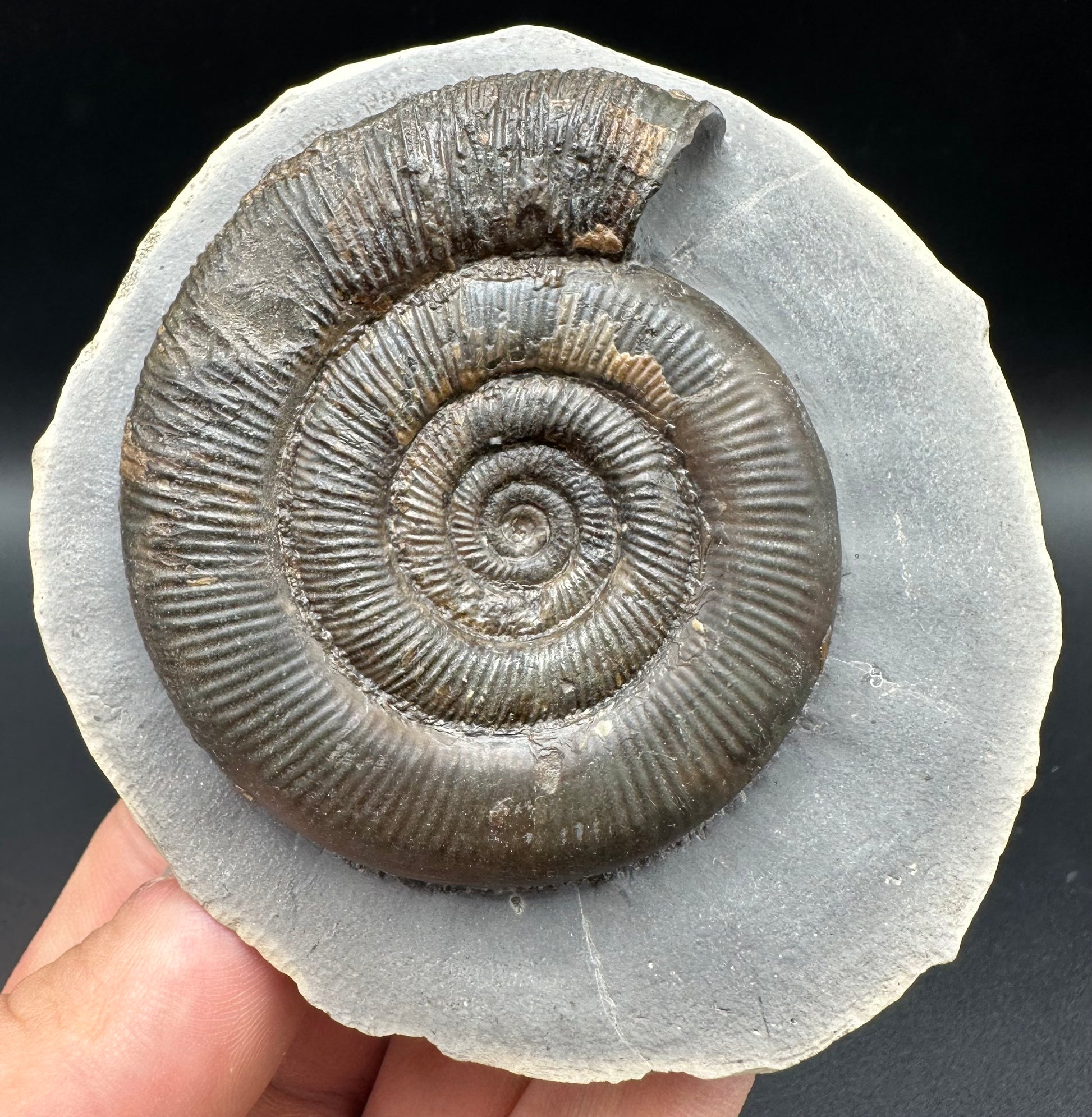 Dactylioceras tenuicostatum Ammonite fossil with box and stand - Whitby, North Yorkshire Jurassic Coast