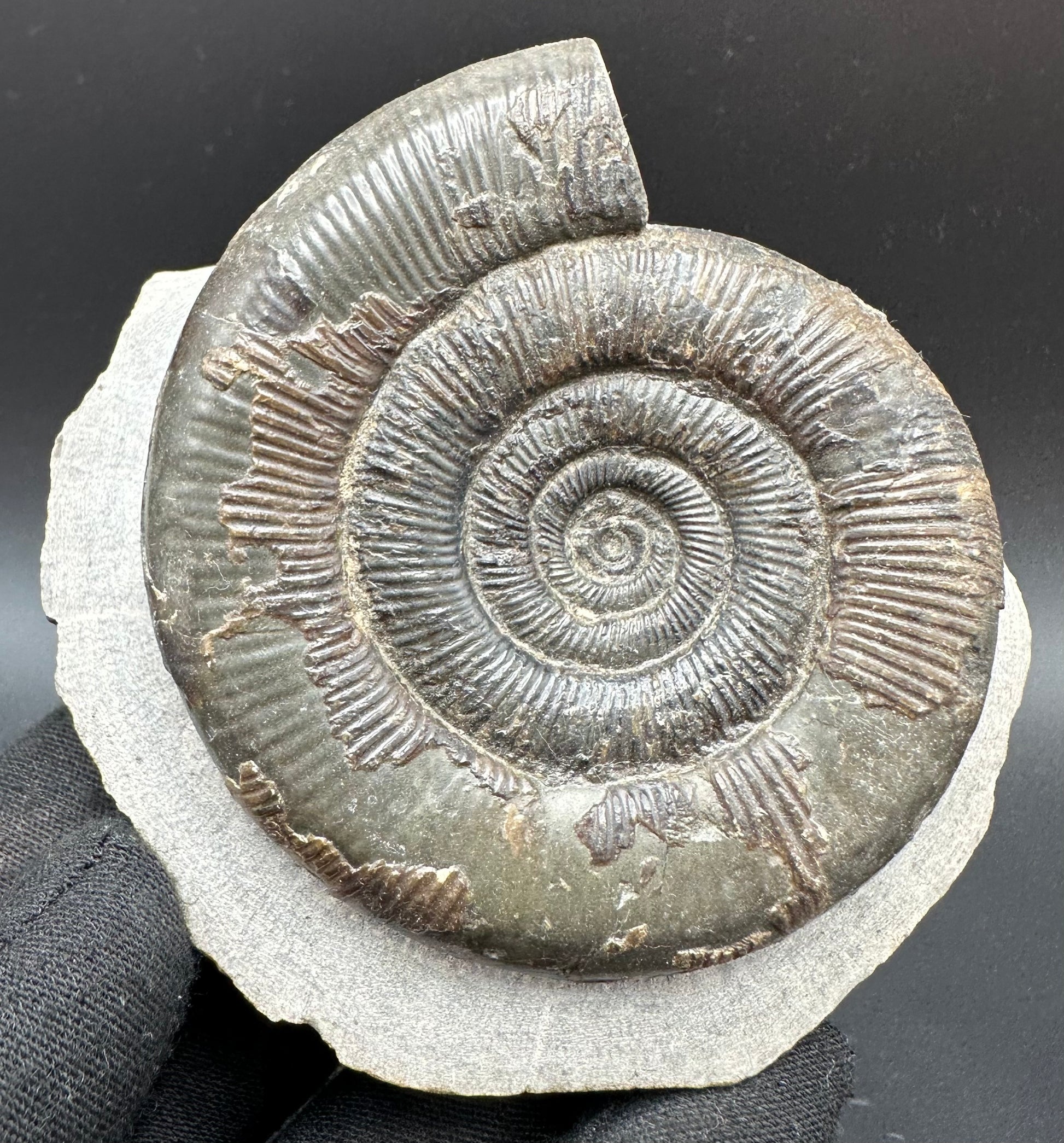 Dactylioceras tenuicostatum Ammonite fossil with box and stand - Whitby, North Yorkshire Jurassic Coast