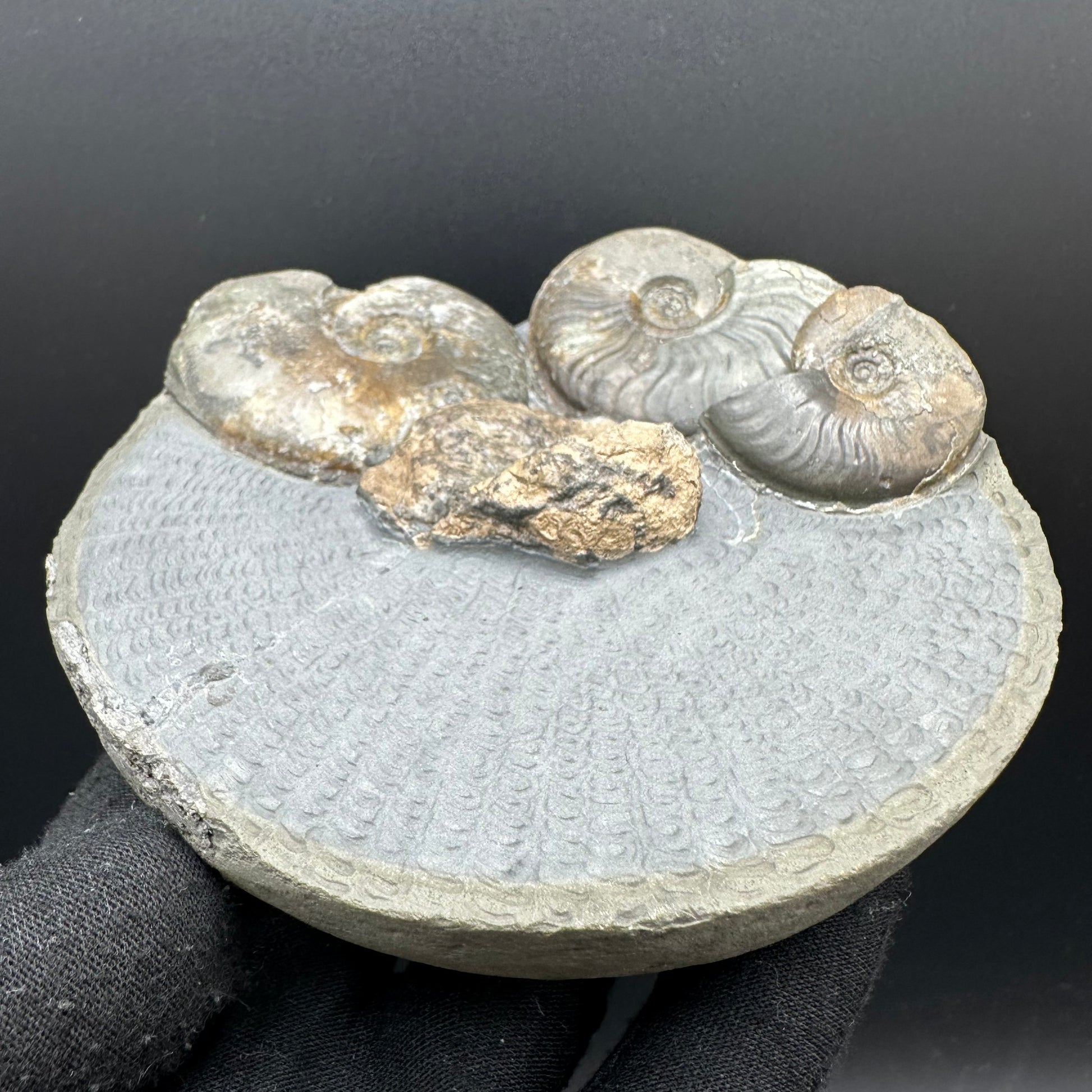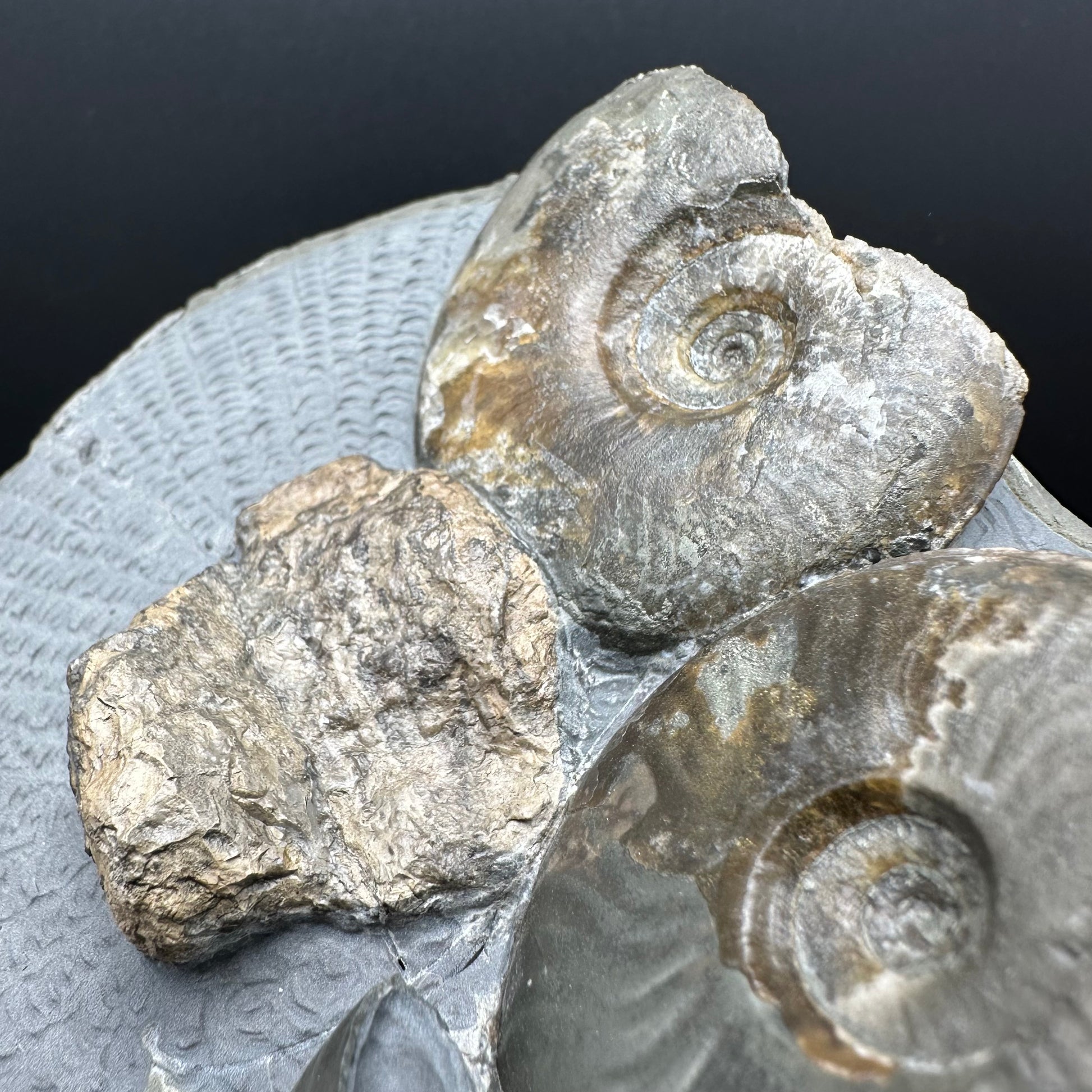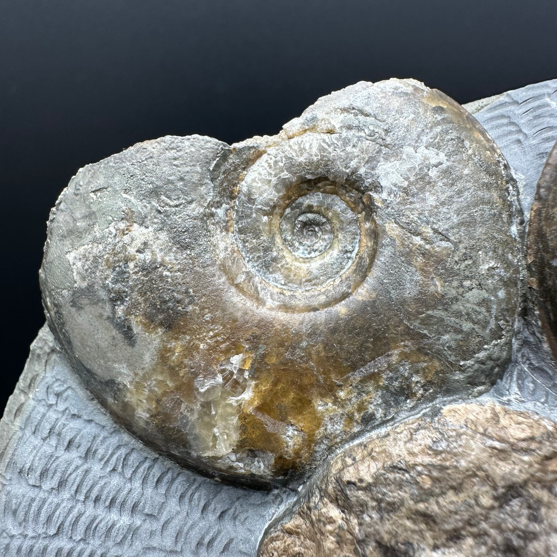 Eleganticeras Elegantulum ammonite / Coprolite fossil with box and stand - Whitby, North Yorkshire Jurassic Coast, Yorkshire Fossils