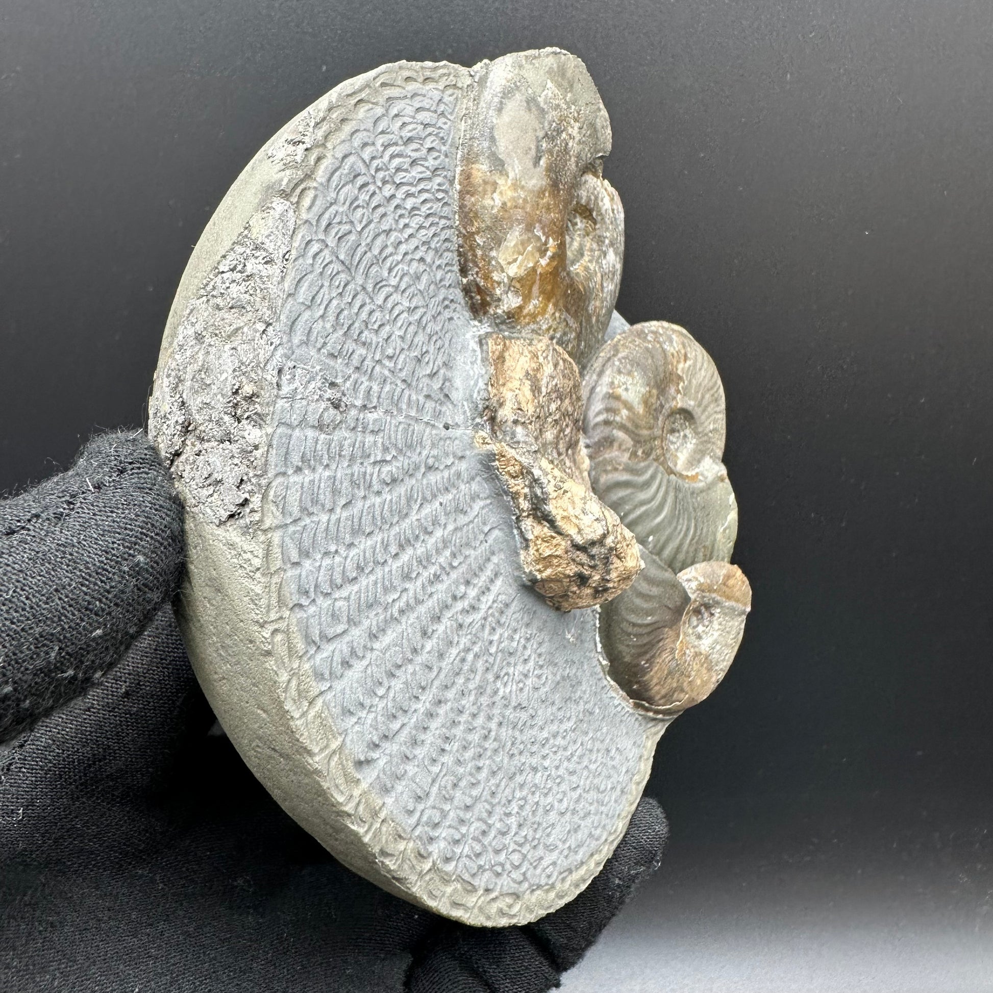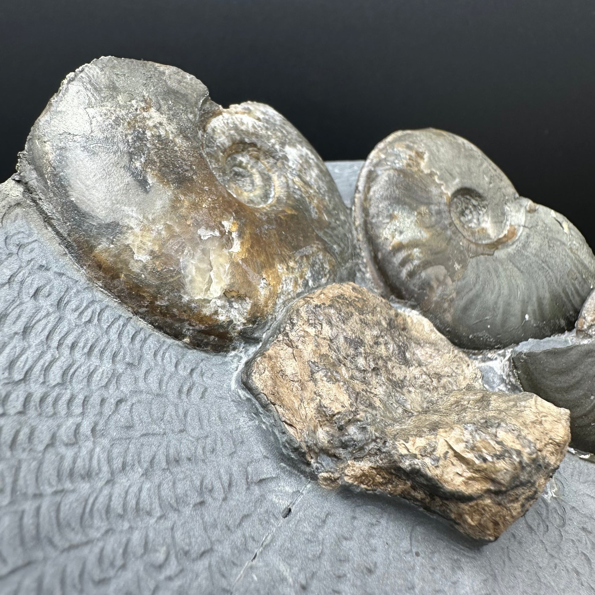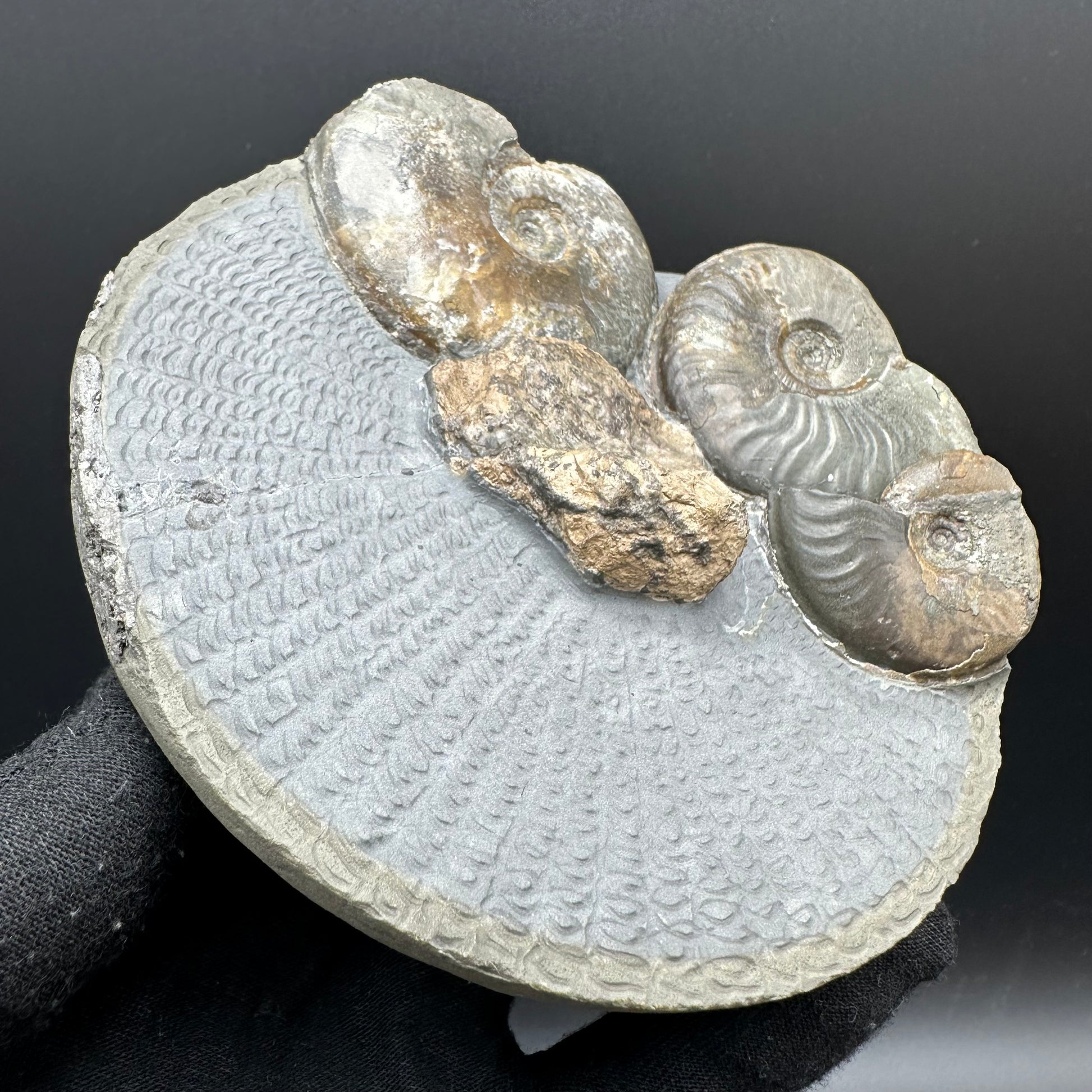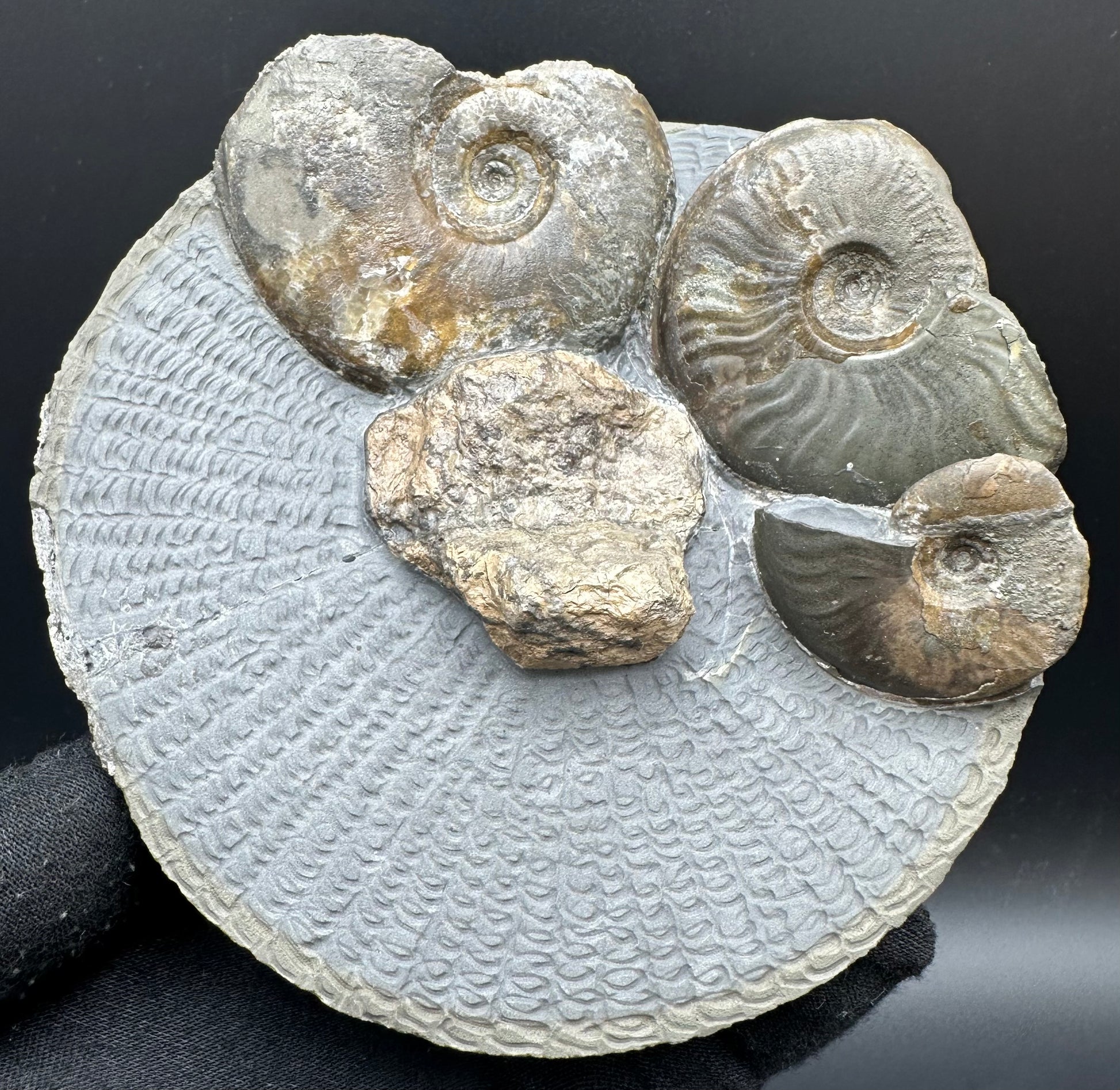 Eleganticeras Elegantulum ammonite / Coprolite fossil with box and stand - Whitby, North Yorkshire Jurassic Coast, Yorkshire Fossils