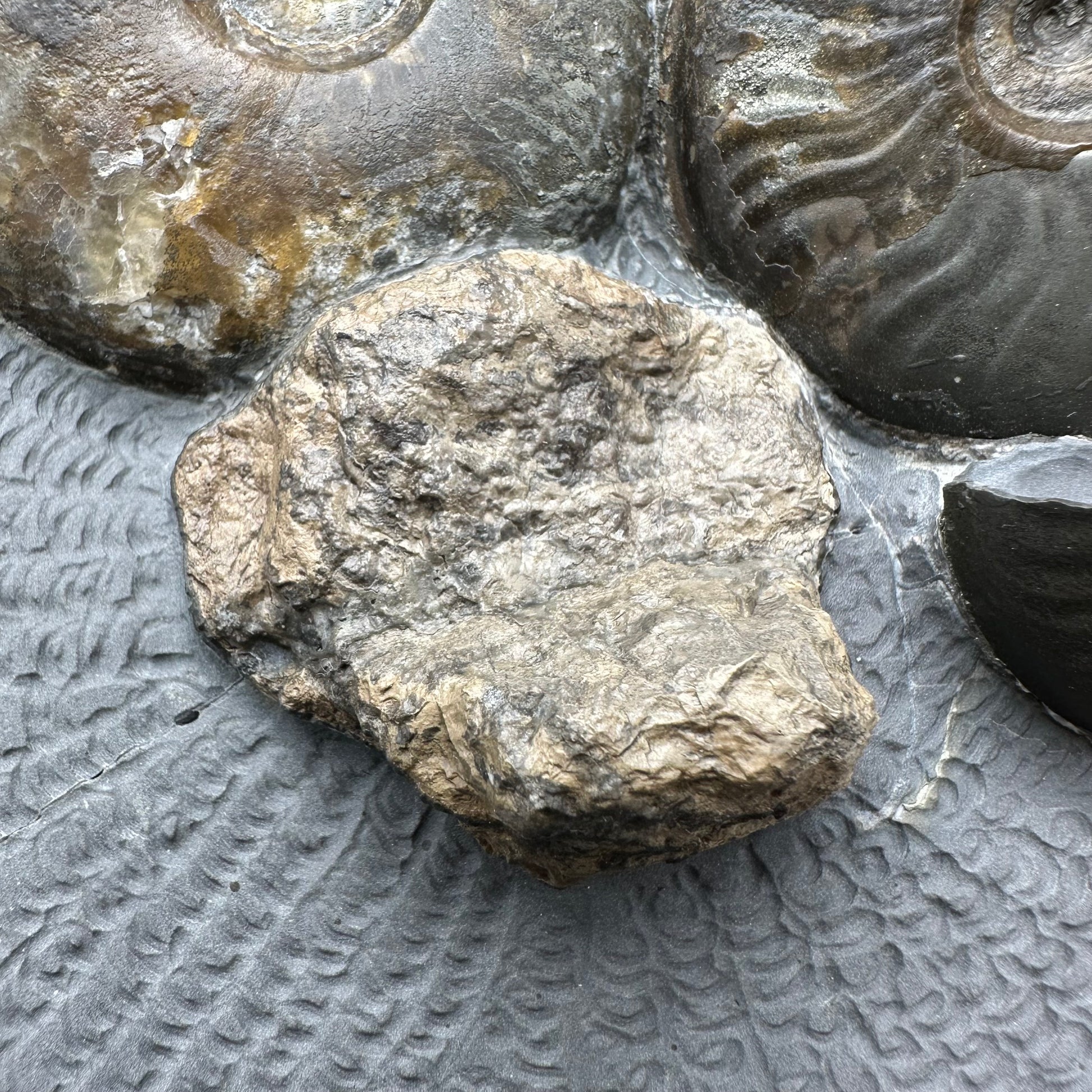 Eleganticeras Ammonite fossil and coprolite fossil for sale found near Whitby, North Yorkshire on the Jurassic Coast