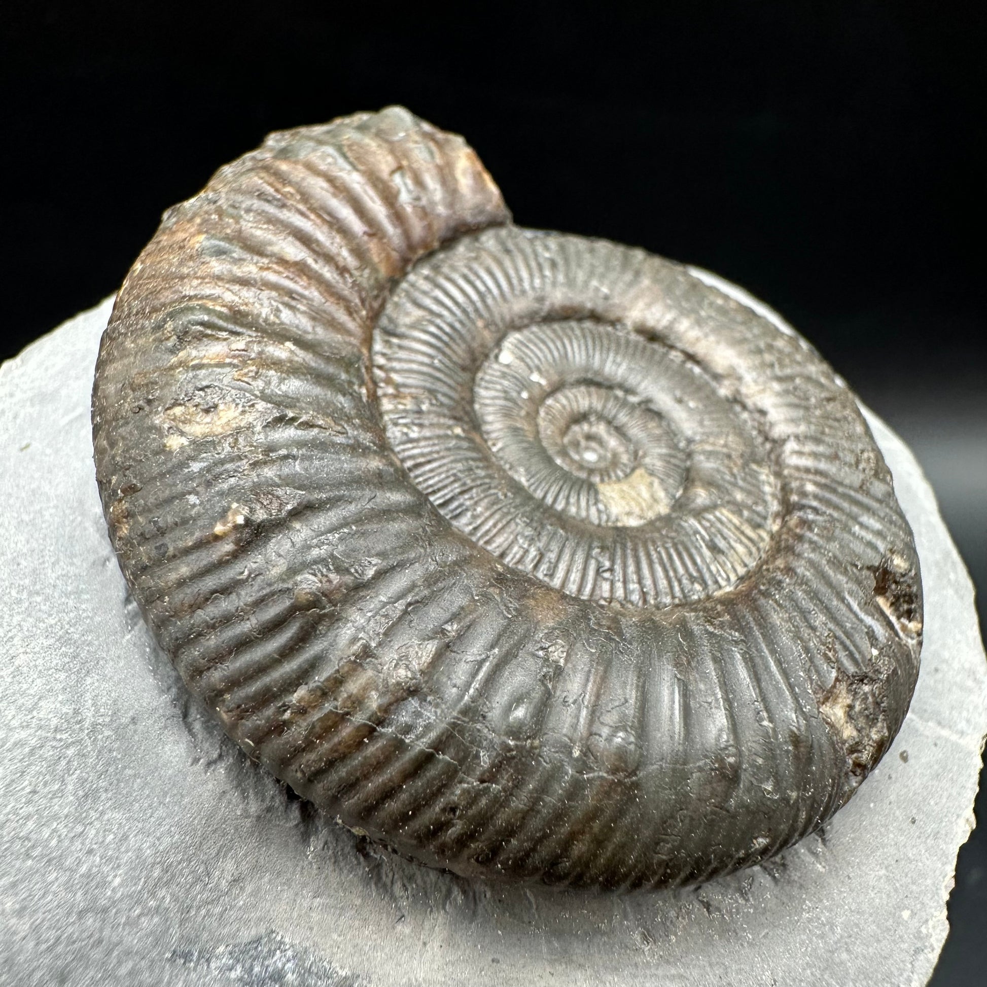 Peronoceras turriculatum Ammonite fossil with box and stand - Whitby, North Yorkshire Jurassic Coast, Yorkshire fossils