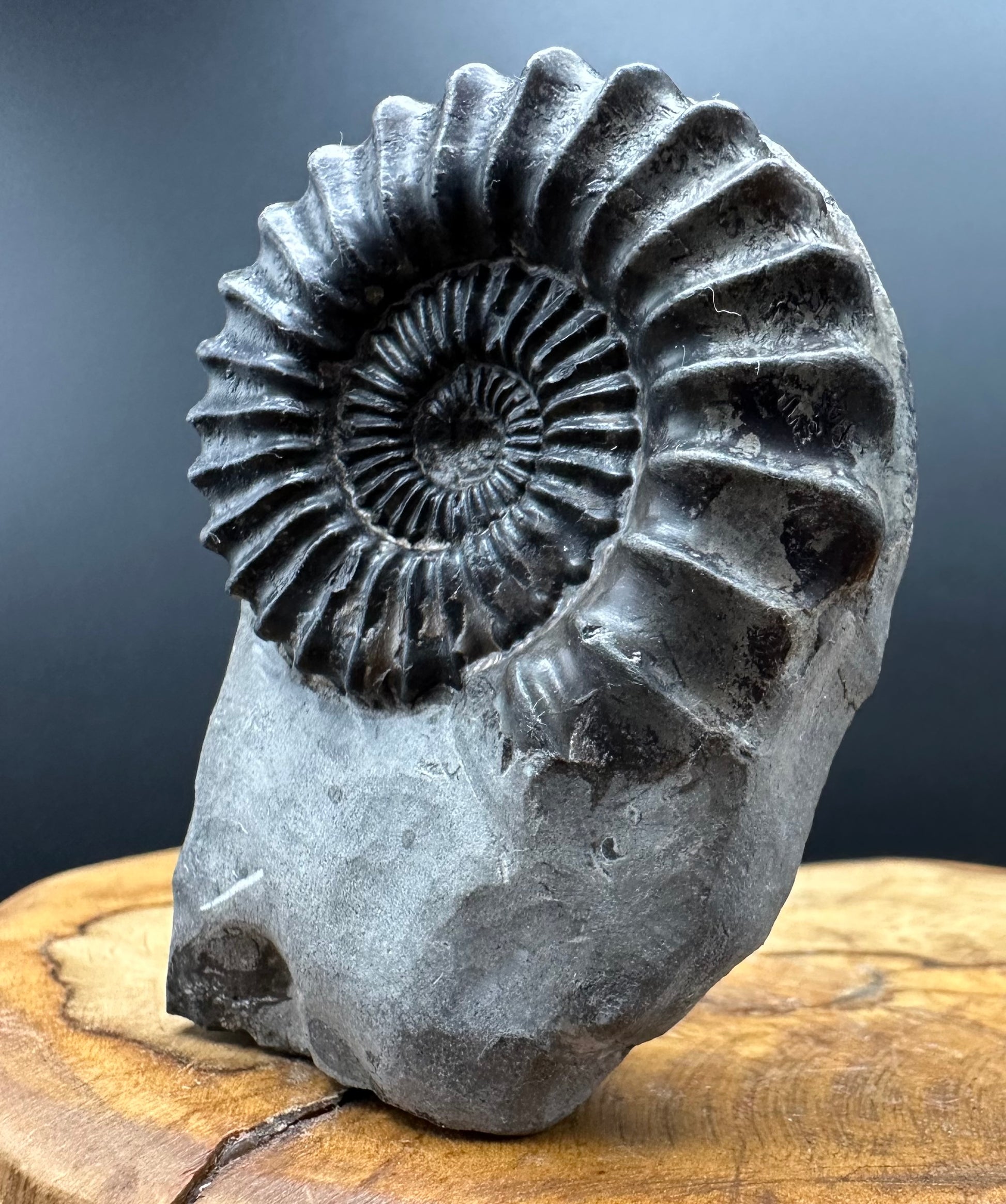 Pleuroceras hawskerense Ammonite fossil with box and stand - Whitby, North Yorkshire Jurassic Coast, Yorkshire fossils