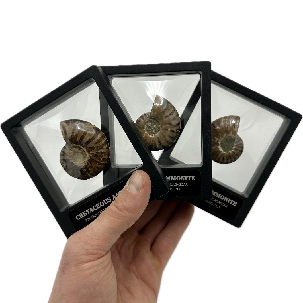 Shelled Madagascan Ammonite Fossil With Display Box And Case for sale