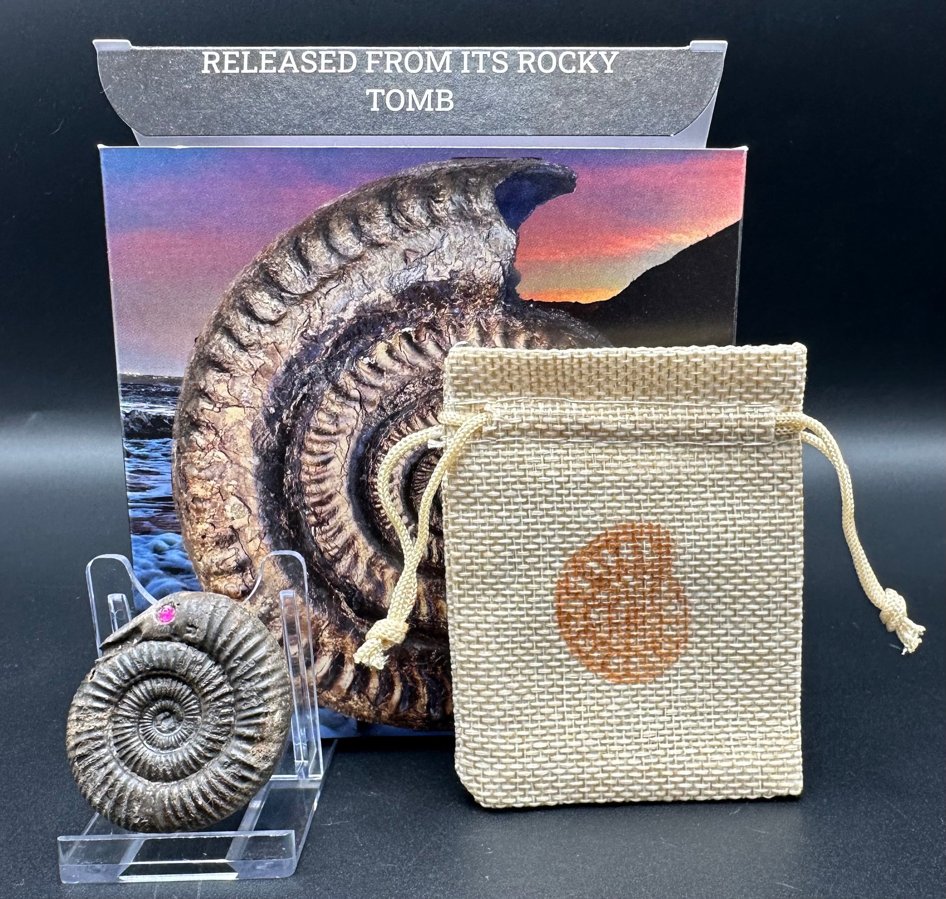 Snakestone Ammonite Fossil With Bag/Box And Stand - Whitby, North Yorkshire Jurassic Coast Yorkshire Fossils