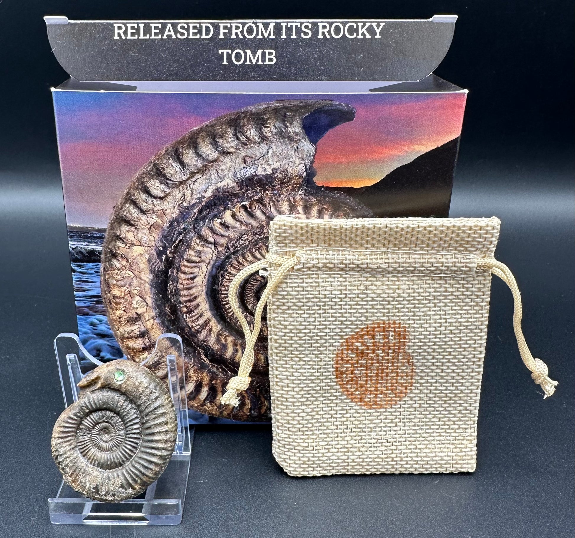 Snakestone Ammonite Fossil With Bag/Box And Stand - Whitby, North Yorkshire Jurassic Coast Yorkshire Fossils