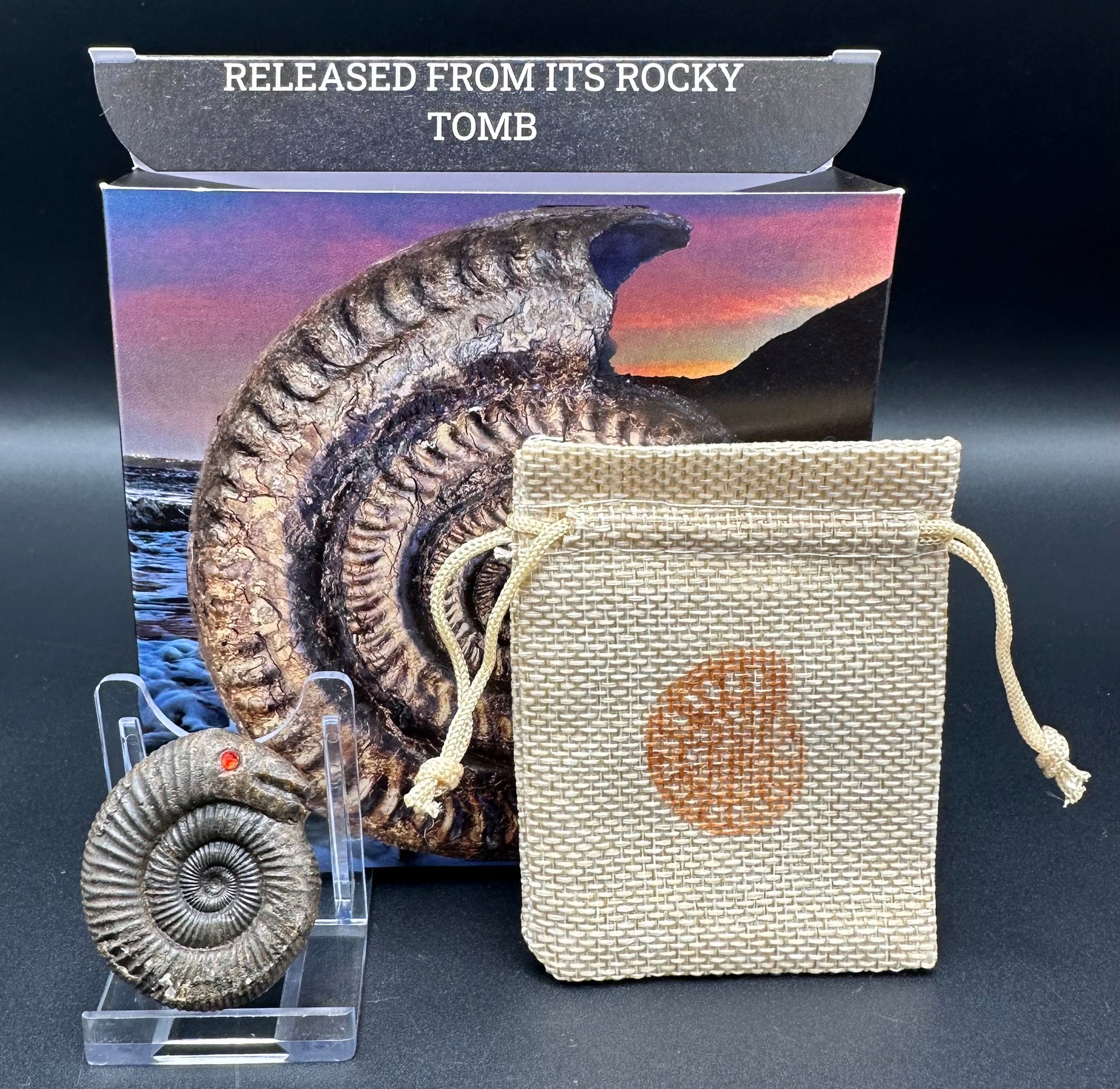 Snakestone Ammonite Fossil With Bag/Box And Stand - Whitby, North Yorkshire Jurassic Coast Yorkshire Fossils